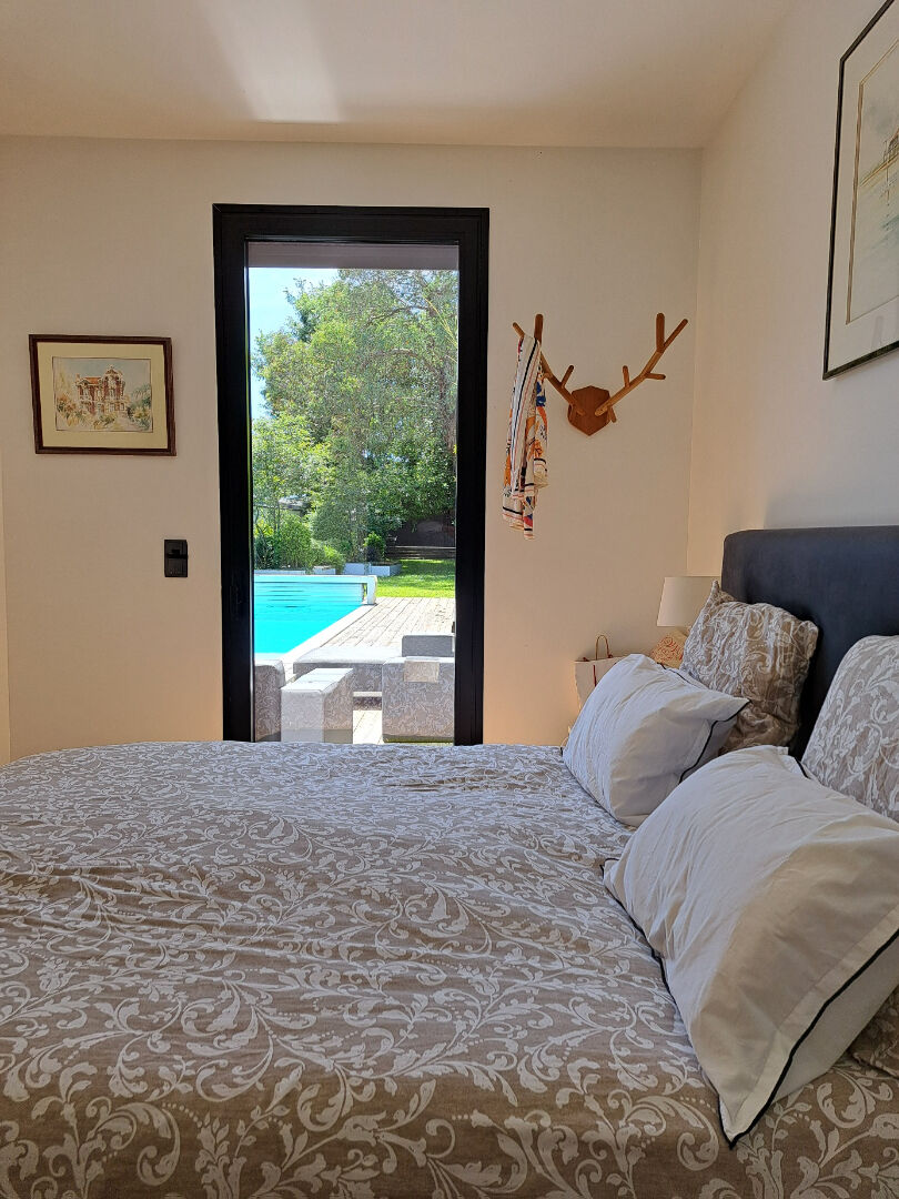 Superbe et rare très grande parcelle arborée de 740m² pour cette belle maison familiale entièrement rénovée par architecte. Toutes les pièces principales sont orientées plein SUD, sans vis à vis, ouvertes sur un véritable petit parc où l'ombre d'un vénérable Eucalyptus promet des tablées fraîches et champêtres en plein centre ville! Au fond et entièrement INDEPENDANT STUDIO de 23m² et sa belle terrasse. Egalement très rare, une grande cour d'accueil, pavée, permet de GARER 3 AUTOS + un GARAGE fermé avec eau/électricité, atelier pour auto/moto de collection. La pièce de vie traversante, lumineuse, triple exposition, hauteur de 2.9m et sa baie vitrée, s'ouvre sur une grande terrasse bois, entourant une PISCINE au sel, chauffée et sans vis à vis! La chambre du rdc, traitée en suite avec dressing est aussi ouverte sur le jardin. L'espace cuisine s'organise autour d'un îlot central intégré, d'un grand plan de travail, pour un ensemble complet et entièrement équipé. L'aspect pratique du rdc est complété par un wc lave mains, une grande buanderie et de nombreux placards intégrés. A l'étage un grand pallier avec coin bureau dédié, dessert 3 chambres, un wc, une SdB, une SdE. Les prestations et équipements sont impressionnants: Tout dossier PC avec conformité, décennale, chauffage et refroidissement au sol par PAC air/eau, isolation BBC, toiture bac acier, plaques BA18, huisseries aluminium de qualité, volets électriques, store banne grande taille, domotique, cheminée, adoucisseur d'eau, puits foré, arrosage intégré, système hi-fi intégré, 2 systèmes home cinéma, branchement électriques pour voitures, portail électrique, etc. Le très rare, c'est aussi une parcelle avec double accès piéton, côté du PARC de la CHENERAIE ou du tram les écus à 2 pas! Cela permet d'accéder au studio par 2 entrées sécurisées laissant libre choix à diverses utilisations. Joachim BERNARD (EI) Agent Commercial - Numéro RSAC : 500107388 - bordeaux.