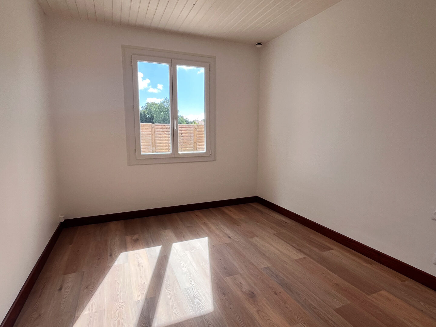 SAINTE-SOULLE. CENTRE BOURG - 15 min de LA ROCHELLE Environnement tres calme, Proche commodités et écoles primaires bus yelo Maison plain-pied ,5/6 pieces de 98 m2 , rénovée en 2025, comprenant entrée, 3 chambres et un bureau de 9,1 m2, piece de vie 38 m2 plein sud sur vaste terrasse de 50 m2 , Salle d'eau, WC indépendant. Possibilité d'agrandissement - garage de 17 m2 et parking ext. sur parcelle A visiter sans tarder !!