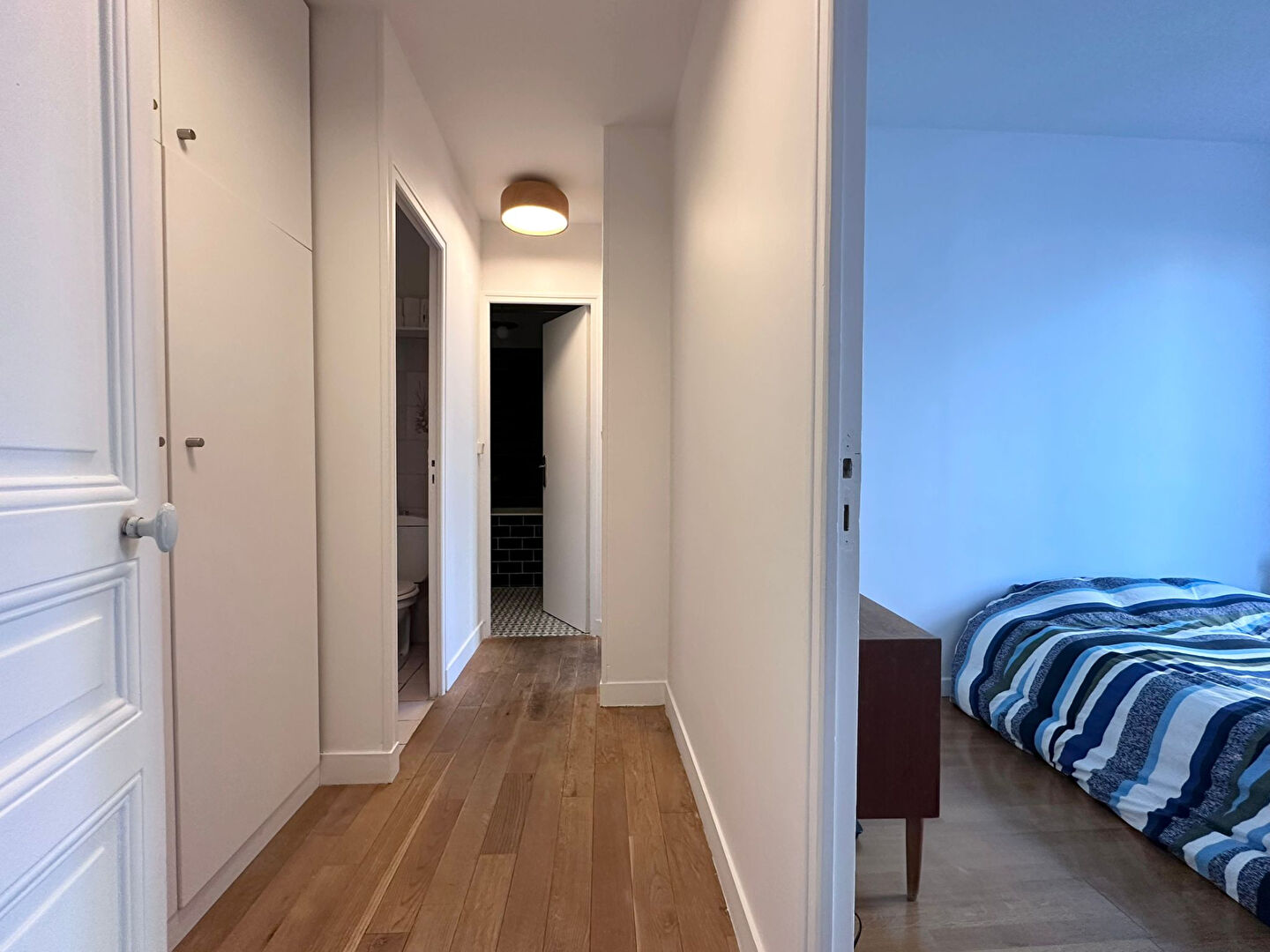 Paris 18eme - Quartier Marx Dormoy A deux pas de la piscine Hébert, au coeur du quartier vivant et authentique de Marx Dormoy, découvrez ce très bel appartement de 65,45 m², entièrement rénové avec goût et au calme absolu, donnant exclusivement sur cour avec vue ciel et dégagée L'appartement offre une distribution optimale sans aucune perte de place : une grande cuisine fonctionnelle, un beau séjour lumineux d'environ 23 m², deux belles chambres, une salle de bain, des WC séparés, un dressing. Deux caves ainsi qu'un cabanon complètent ce bien. Un appartement chaleureux, clé en main, alliant calme et vie de quartier. Véritable coup de coeur. (3.16 % honoraires TTC à la charge de l'acquéreur.) Copropriété de 64 lots - dont 47 lots habitation. Charges annuelles : 1835 euros. Teddy MASCRET (EI) Agent Commercial - Numéro RSAC : - .