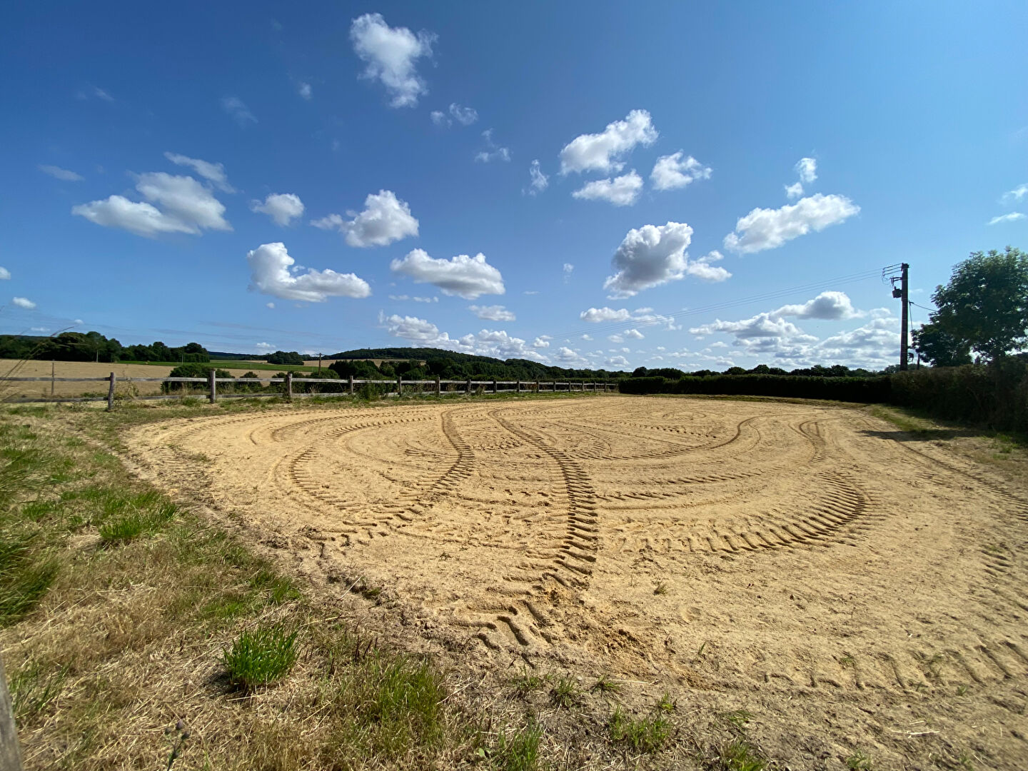 Située dans le perche, maison de campagne 4 chambres Maison de campagne 313 m² habitables comprenant : entrée sur cuisine 38 m² avec poêle à bois, salon avec cheminée ouverte, deux chambres 20 et 30 m², salle d'eau avec wc, arrière cuisine, salle de jeux ou 2ème salon 60 m², salle d'eau avec wc, chaufferie et cave sous la maison. A l'étage : palier, deux chambres dont une avec salle de bains, douche et wc, grenier 43m² aménageable. Double vitrage bois, chauffage central fuel et bois. Dépendance 300m² au sol : grange, écurie et un atelier. Deux box à chevaux. Terrain 2 hectares clos avec une carrière 20m * 40m. Au calme et isolé. (5.00 % honoraires TTC à la charge de l'acquéreur.)