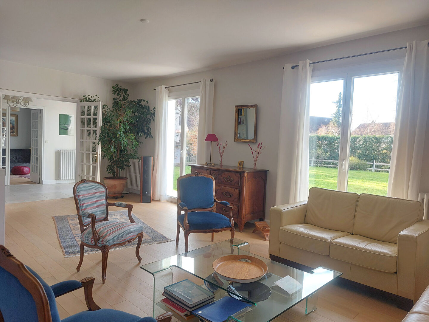SAINT-DOULCHARD : Dans une impasse au sein d'un quartier résidentiel à proximité immédiate de l'entrée de Bourges, très belle maison de famille de 188m² habitables environ sur une belle parcelle de 1007m². Elevée sur un vaste sous-sol semi-enterré, l'habitation comprend : - au rez-de-chaussée : une vaste et belle entrée donnant accès à un beau salon-salle à manger de 44m² environ avec cheminée (insert) et accès de plain-pied à la terrasse et au jardin, une cuisine aménagée et équipée, deux belles chambres (ou une chambre et un bureau), une salle de bains, toilettes, - à l'étage : un palier dessert trois belles chambres, une penderie, une salle d'eau, toilettes, greniers sous rampants, Sous l'ensemble : un vaste sous-sol comprenant une grande entrée avec placard, un garage pour deux véhicules, une pièce d'appoint chauffée, une buanderie et une cave. Ensemble très lumineux (belle exposition) et en très bon état (excellent entretien et travaux de rénovation récents), environnement très calme (fond d'impasse), double vitrage PVC sur l'ensemble, pompe à chaleur récente, tableau électrique refait, grande cour à l'avant pour stationner plusieurs véhicules, agréable jardin à l'arrière. DPE : C 359 000 EUR dont honoraires inclus de 5,59% TTC à la charge de l'acquéreur, 340 000 EUR hors honoraires. Les informations sur les risques auxquels ce bien est exposé sont disponibles sur le site Géorisques: www.georisques.gouv.fr (5.59 % honoraires TTC à la charge de l'acquéreur.)