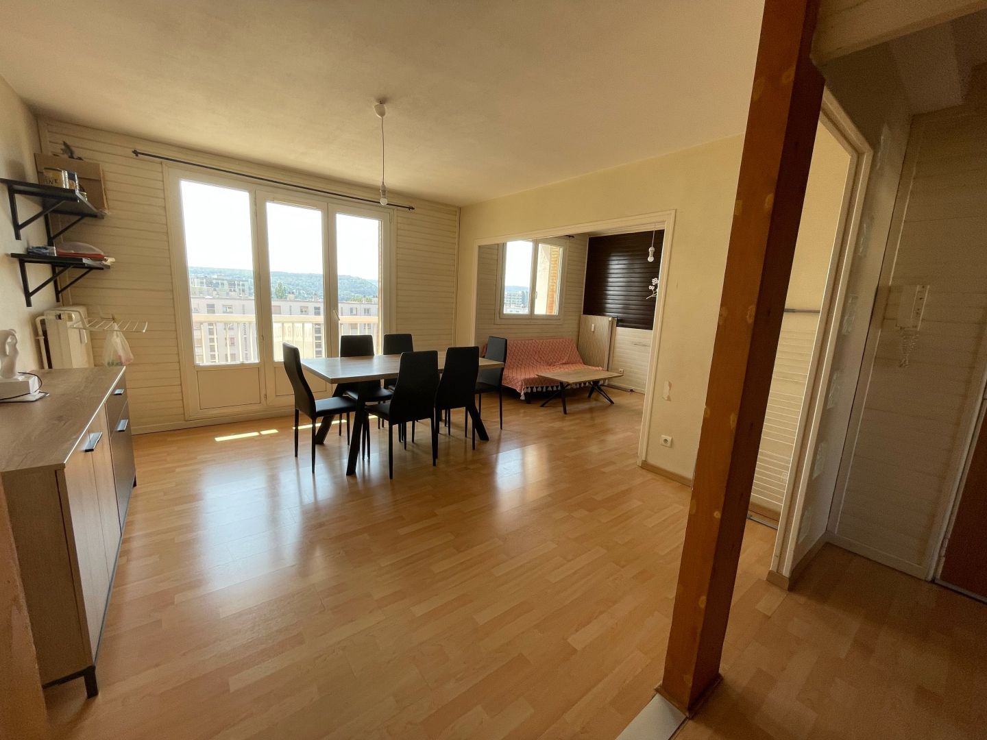 BERSOT IMMOBILIER BESANCON vous propose ce grand appartement T3 de 67 m² situé dans le quartier Saint-Claude, Rue Jean Wyrsch à Besançon. Au dernier étage de la copropriété, il comprend une entrée, une cuisine indépendante équipée (four, plaque gaz et hotte), un séjour, deux chambres, un dressing et une salle de bain ainsi qu'un balcon. Il dispose également d'une cave privative et d'un parking collectif. Chauffage collectif inclus dans les charges. Disponible début mars.