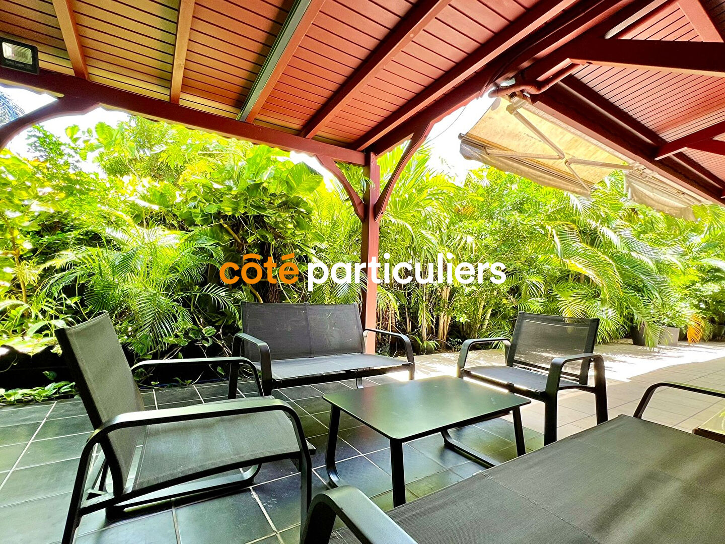 Située dans le quartier May, à proximité du bourg, cette maison familiale offre un cadre de vie paisible et verdoyant, idéal pour les amoureux de la nature. Agencement intérieur : Espace jour composé d'une cuisine moderne avec cellier, d'un salon et d'une grande pièce commune reliant les deux ailes de la maison Espace nuit comprenant : Une suite parentale avec salle d'eau privative Deux chambres supplémentaires Une salle d'eau commune un espace de rangement et un grenier de 60m² Extérieurs : Grande terrasse ouverte en bois, parfaite pour les moments de détente Jardin spacieux, magnifiquement arboré, offrant calme et intimité Vous serez totalement séduit par ce jardin tropical aux essences rares Abris voiture Cuve d'eau Installation prête pour une piscine : le système est déjà en place, moteur inclus. Cette propriété séduit par son authenticité, ses nombreuses possibilités d'aménagement, et son charme indéniable. Possibilité d'ajouter des bungalows avec accès indépendant sur 500m² de terrain Pour plus d'informations ou pour organiser une visite, contactez votre agence Côté Particuliers (6.30 % honoraires TTC à la charge de l'acquéreur.)
