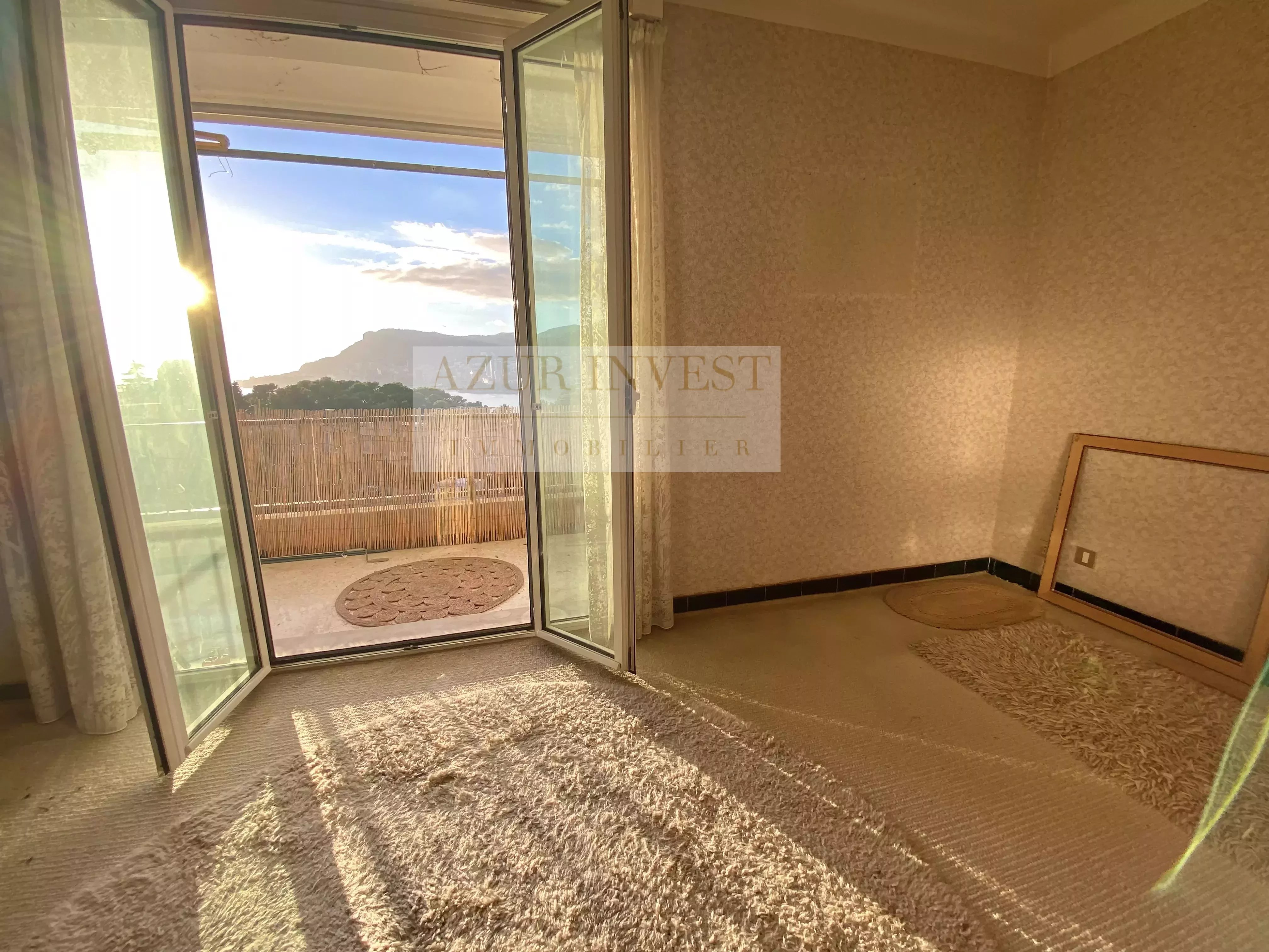 Votre agence Azur Invest vous propose à la vente un 3 pièces situé en dernier étage, avec vue imprenable sur la mer, les montagnes et la baie de Monaco. Idéalement situé sur le plateau du Cap Martin, il se compose de la façon suivante : entrée avec coin buanderie, séjour et cuisine indépendante, deux chambres, salle de bain/wc. L’ensemble des pièces de vie bénéficie d’un accès direct à une agréable terrasse exposée plein ouest, idéale pour profiter des couchers de soleil et du panorama exceptionnel. Parking privatif et grande cave inclus, à saisir rapidement !