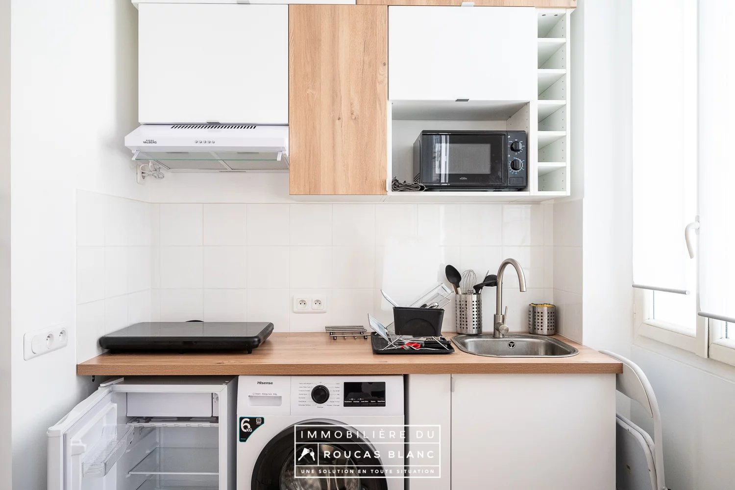 Belle pièce de vie très lumineuse (exposée sud-est)comprenant un canapé convertible, une T.V. avec branchement fibre et une cuisine entièrement équipée (lave-linge, hotte, plaques à induction, micro-onde grill et réfrigérateur/congélateur) ; d’une chambrette avec fenêtre (lit double et dressing) au calme donnant sur cour ainsi que d’une salle d'eau avec wc.