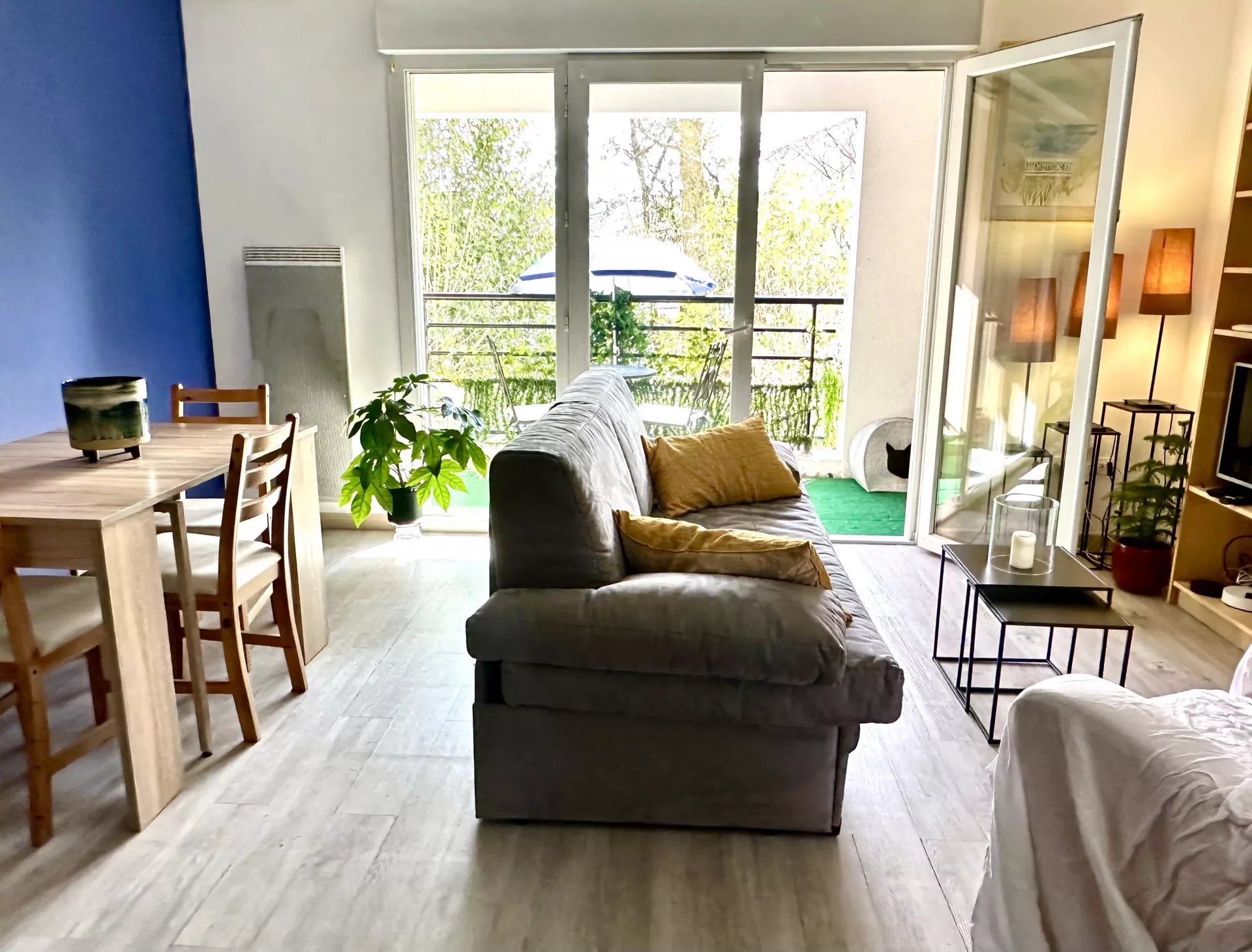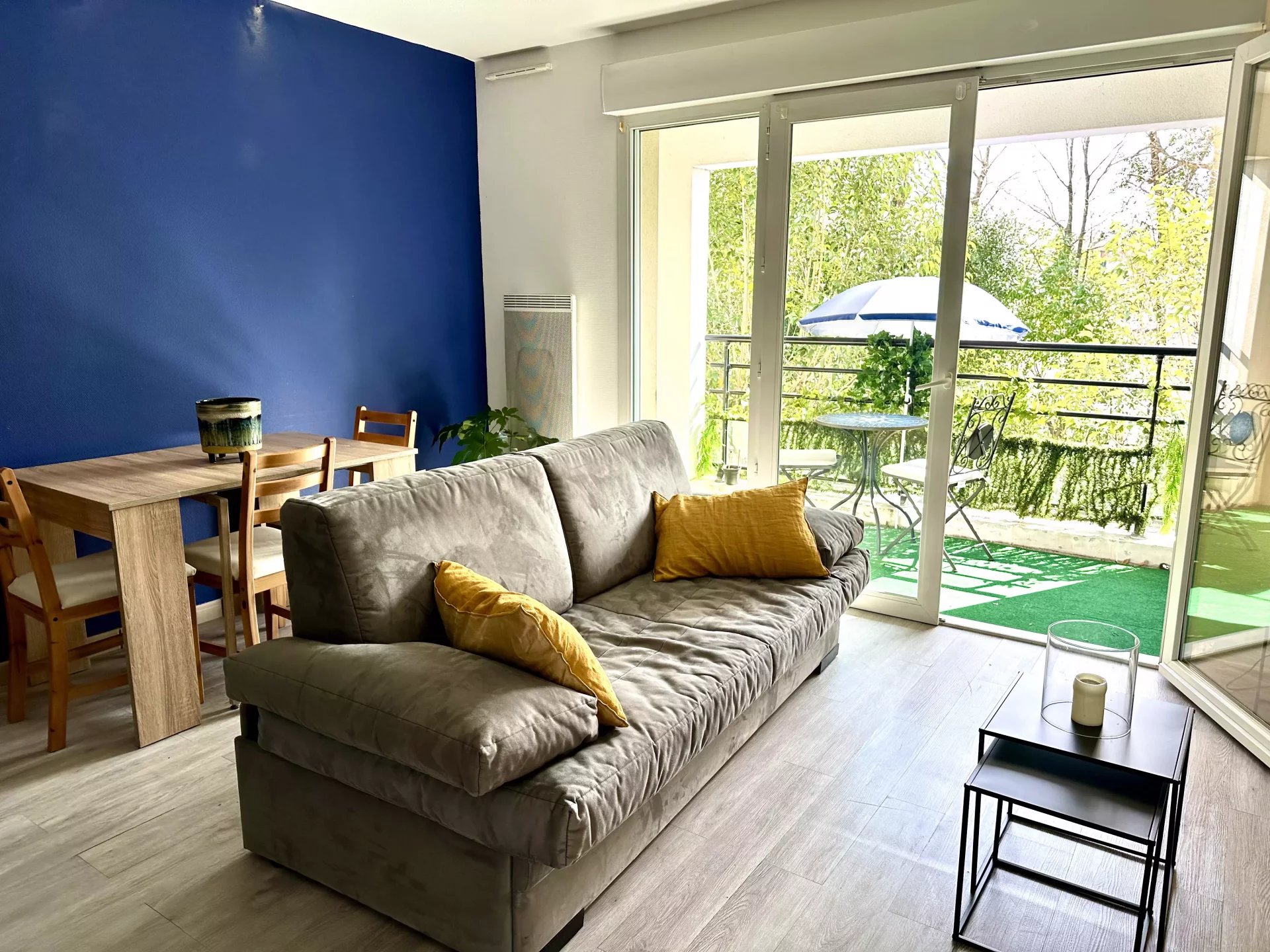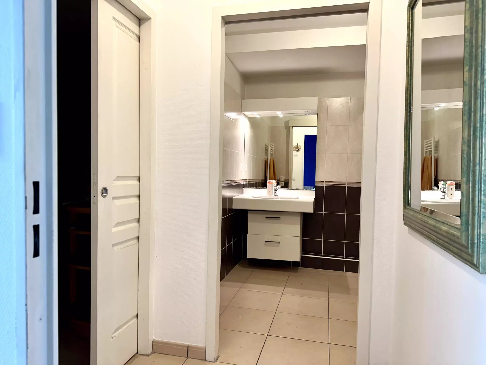 Joli appt de type T2 semi meublé dans résidence récente avec ascenseur comprenant : une entrée, une cusine aménagée et équipée ouverte sur un séjour avec coin repas et accès sur une terrasse, une chambre, une salle d'eau et un wc.