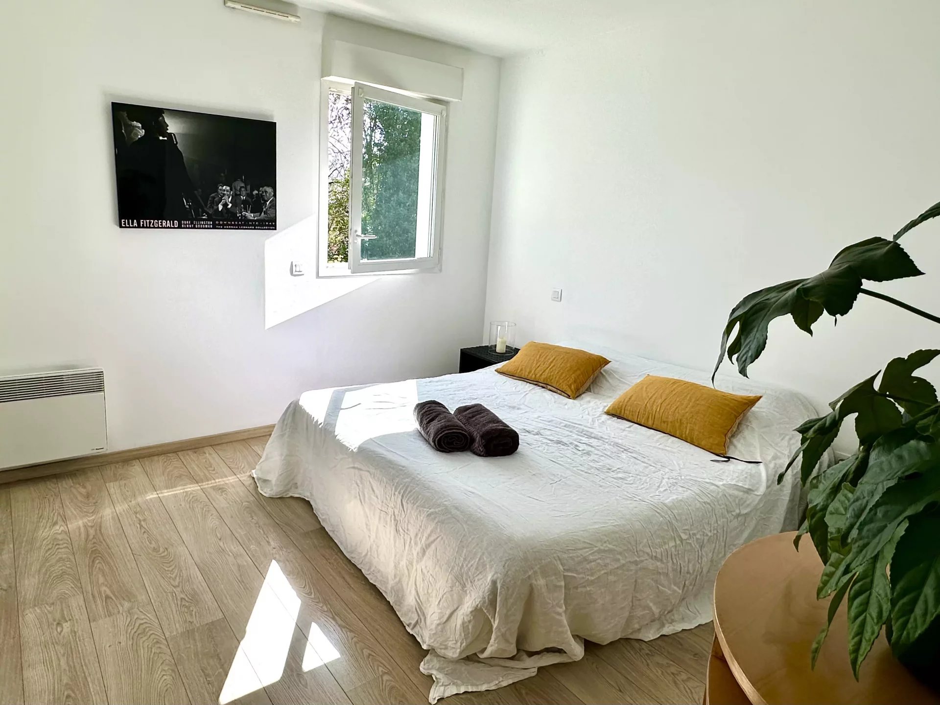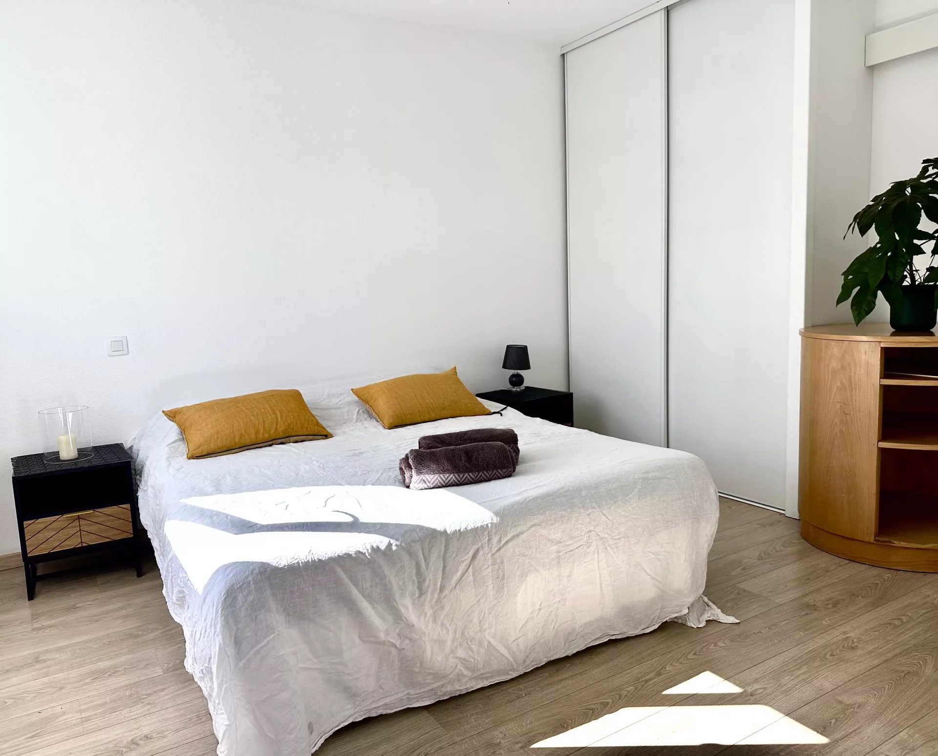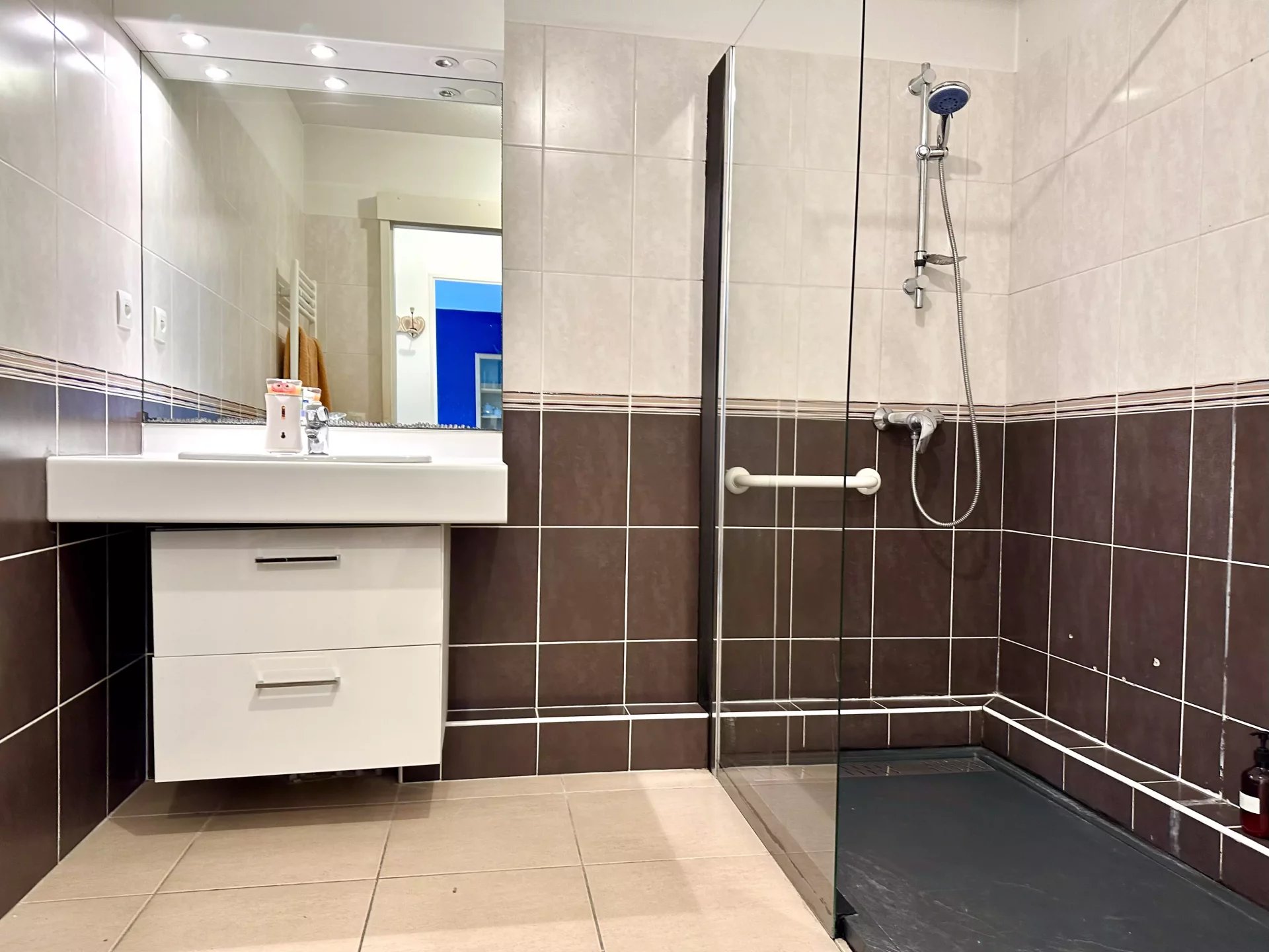 Joli appt de type T2 semi meublé dans résidence récente avec ascenseur comprenant : une entrée, une cusine aménagée et équipée ouverte sur un séjour avec coin repas et accès sur une terrasse, une chambre, une salle d'eau et un wc.