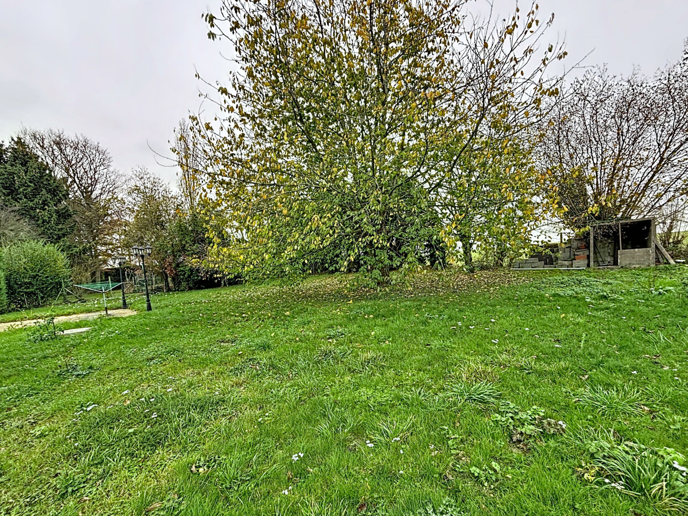 Un garage vient compléter l'ensemble, le tout sur un terrain d'environ 1200 m² offrant une vue dégagée sur les champs.