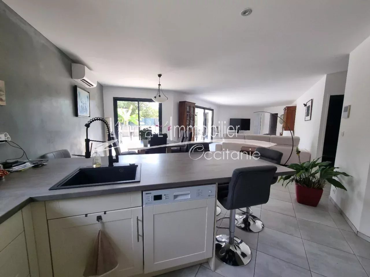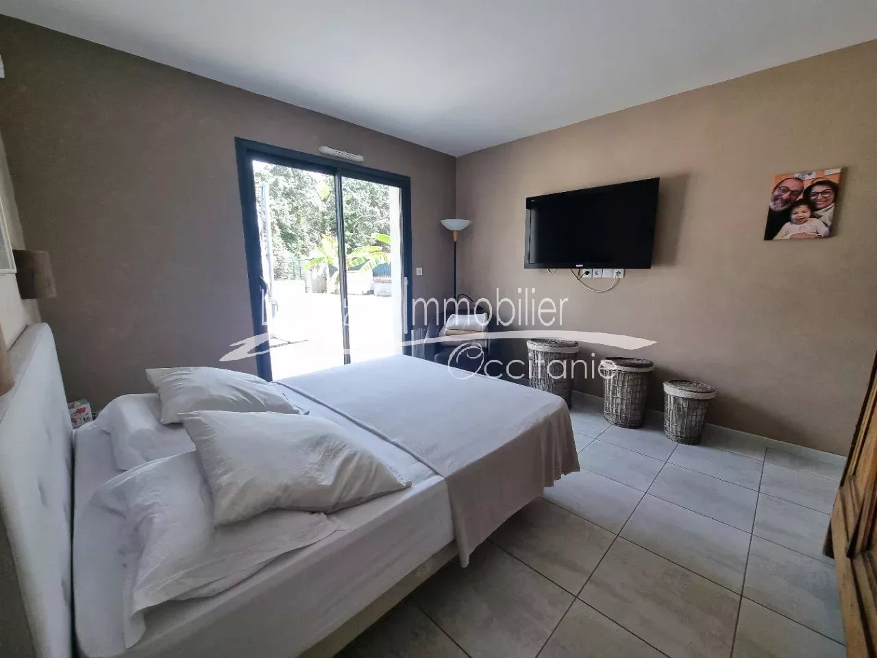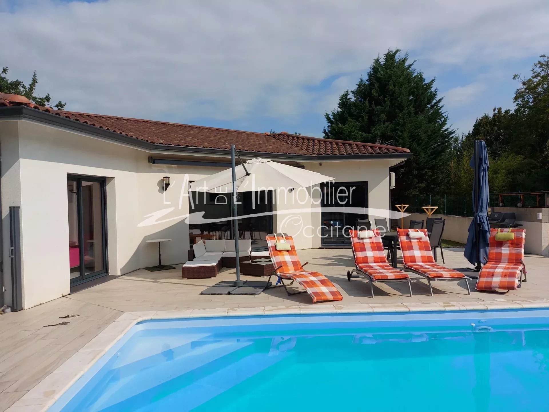 Belle maison contemporaine, de standing, de plain pieds, située dans un écrin de verdure, à 5 mn des commodités. Son intérieur se compose de son entrée/dégagement, toilettes/lave mains, placards, séjour/cuisine équipée, ouverts sur terrasse, vue piscine, buanderie/cellier, . Sa partie nuit offre une belle chambre parentale agrémentée de son dressing et salle d'eau/wc + 2 autres chambres, dont 1 avec son grand placard. Salle de bains. Très belles prestations, haut de gamme. Piscine sécurisée, bâchée, belle plage dallée, ensoleillée et protégée par son store banne, motorisé. L'ensemble édifié sur un beau terrain clos de 884 M². Sans vis à vis. Au calme.