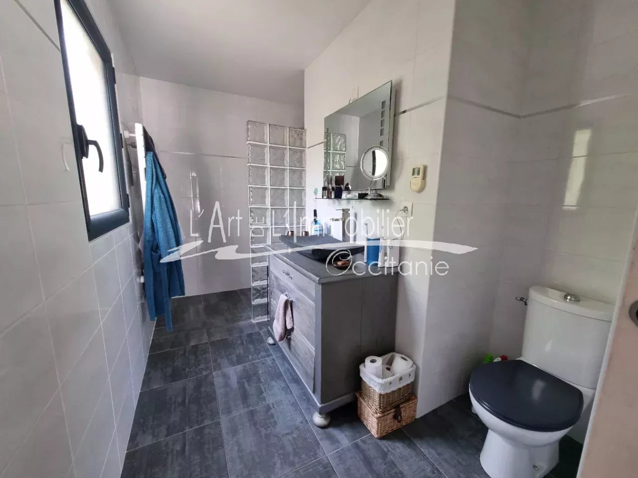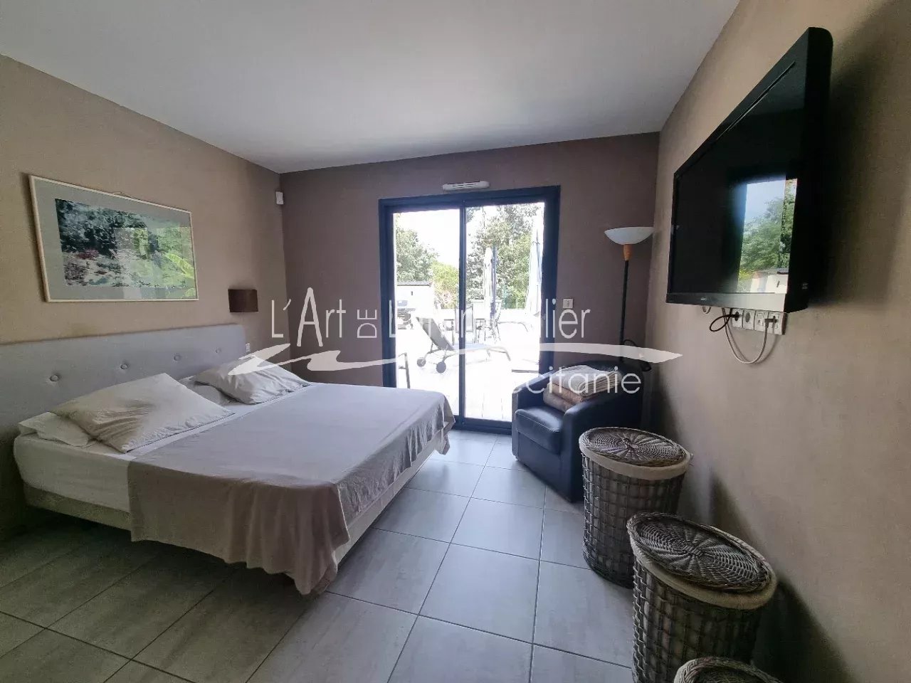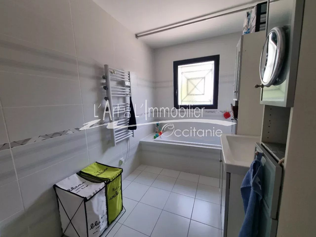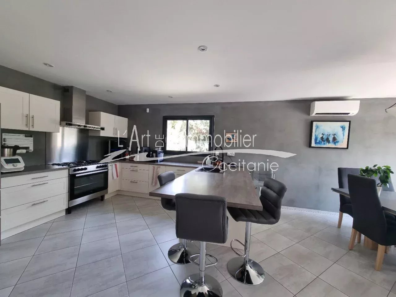 Belle maison contemporaine, de standing, de plain pieds, située dans un écrin de verdure, à 5 mn des commodités. Son intérieur se compose de son entrée/dégagement, toilettes/lave mains, placards, séjour/cuisine équipée, ouverts sur terrasse, vue piscine, buanderie/cellier, . Sa partie nuit offre une belle chambre parentale agrémentée de son dressing et salle d'eau/wc + 2 autres chambres, dont 1 avec son grand placard. Salle de bains. Très belles prestations, haut de gamme. Piscine sécurisée, bâchée, belle plage dallée, ensoleillée et protégée par son store banne, motorisé. L'ensemble édifié sur un beau terrain clos de 884 M². Sans vis à vis. Au calme.