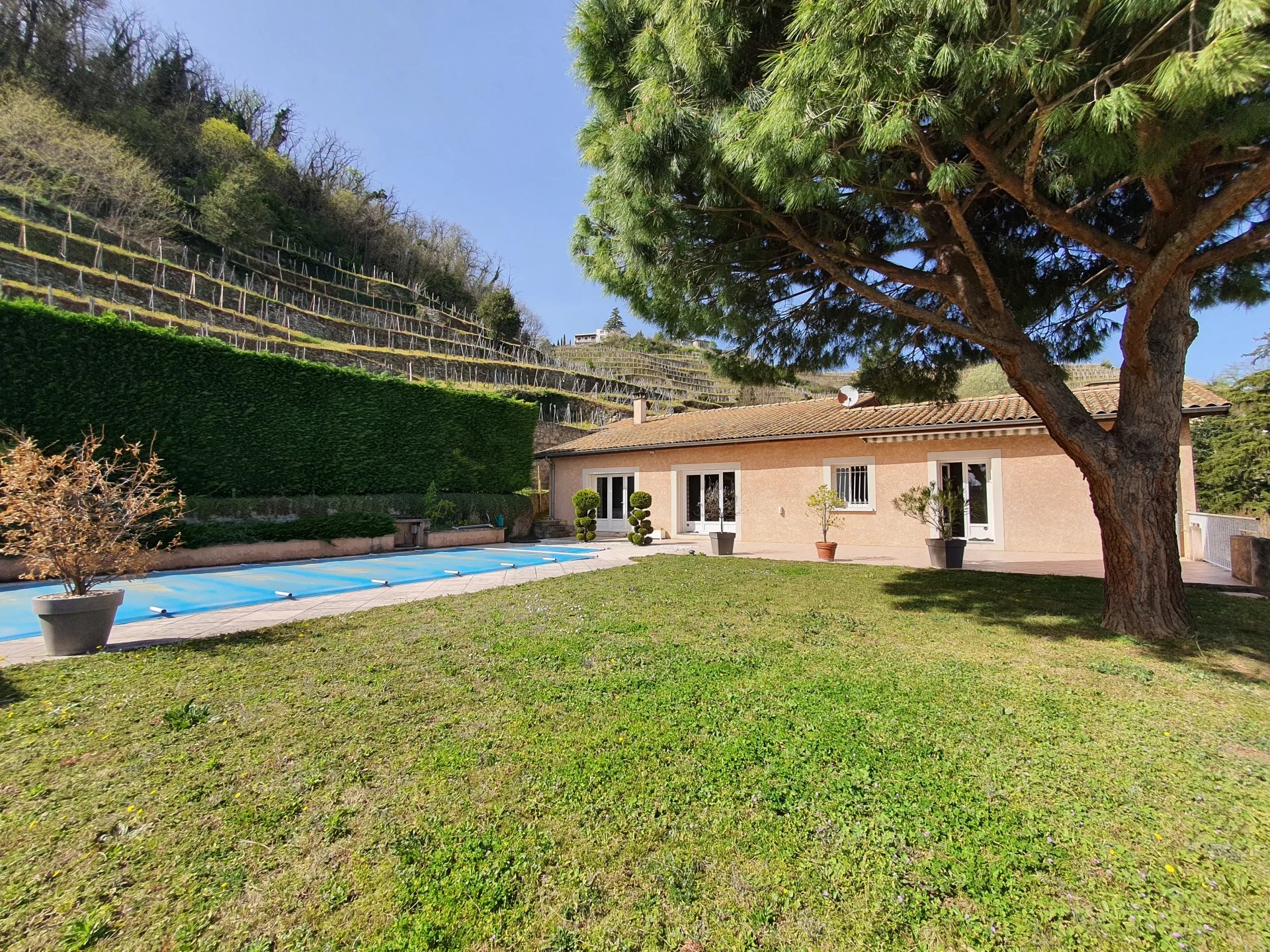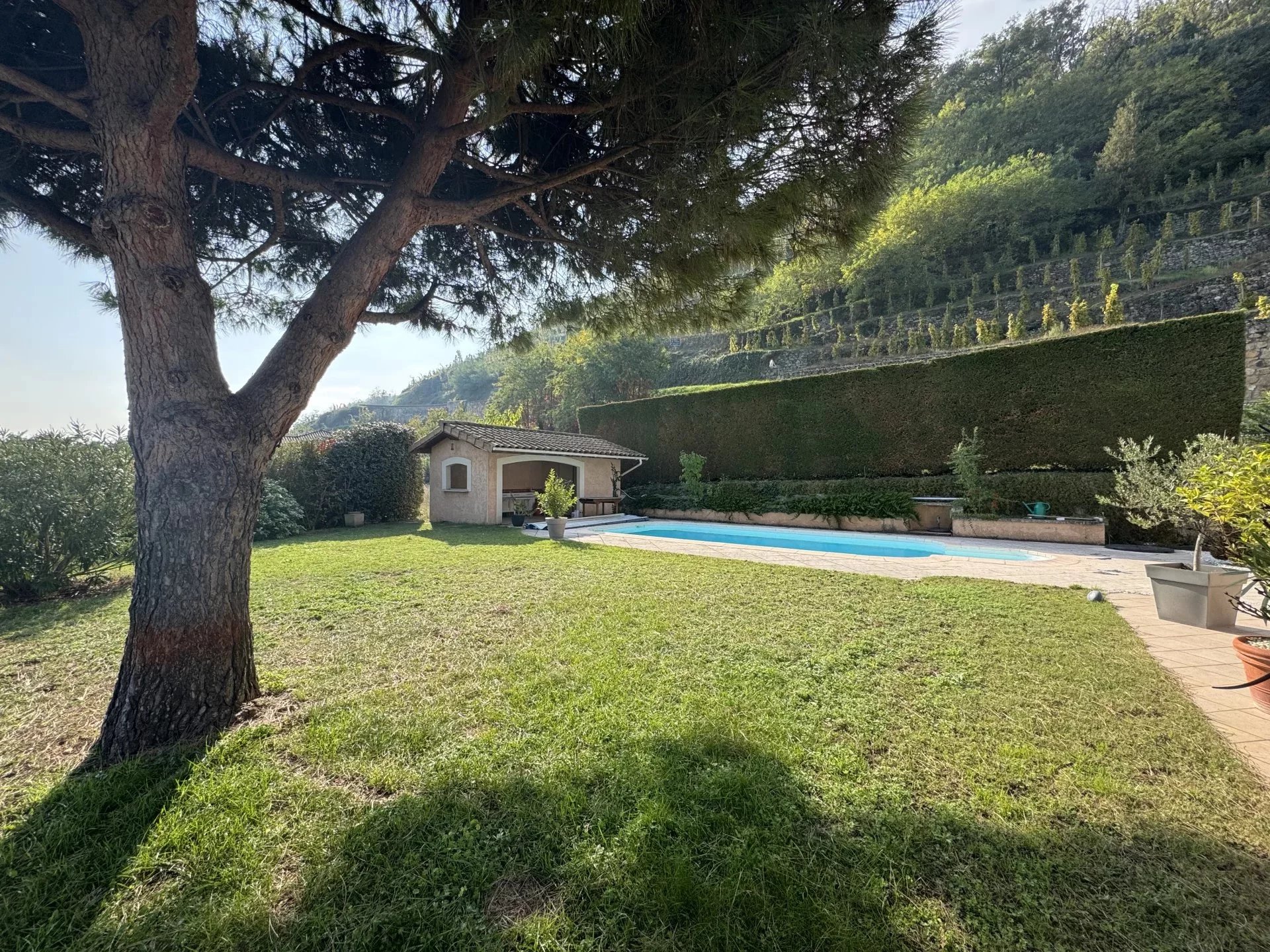 L’ensemble est implanté sur un terrain de 1400m² environ, avec une cour, un jardin arboré, une piscine et son pool house. ***Multiples atouts, à voir absolument***