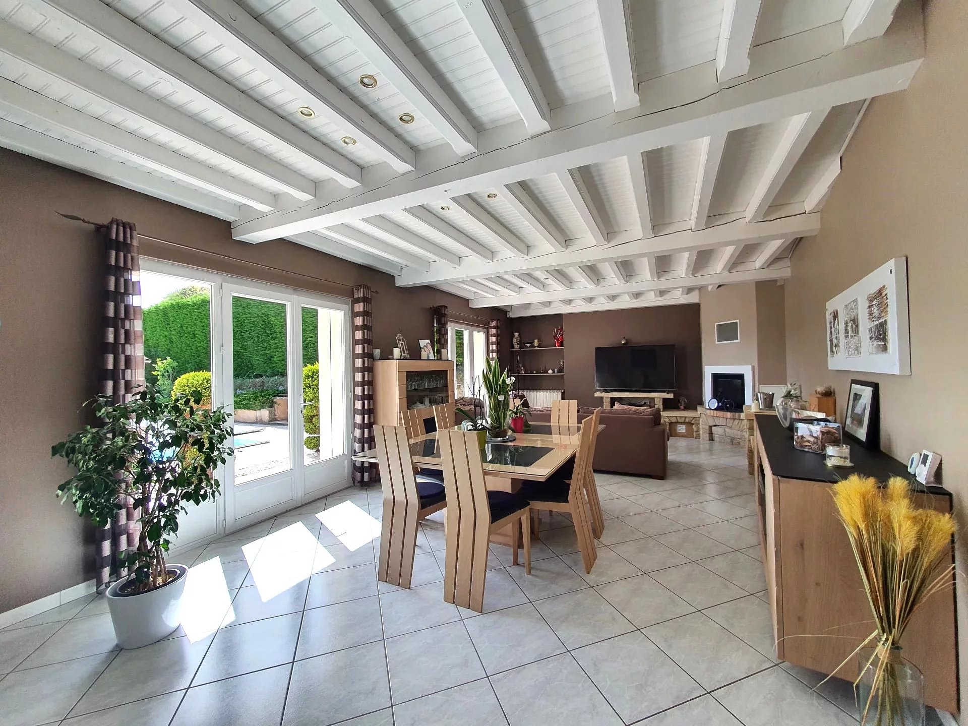 VERIN, ***En exclusivité*** proche CONDRIEU, à 1 heure de LYON et seulement 15 minutes de l’entrée d’autoroute, maison de 150 m² habitables, à proximité du Parc Naturel Régional du Pilat. Vous trouverez ici de beaux volumes et un cadre de vie idéal pour une famille. La maison se compose d’une entrée, d’une cuisine, d’un séjour lumineux ouvrant sur une terrasse, de 4 chambres, d’une salle de bain, d’une buanderie et de toilettes indépendantes. La maison repose sur un sous-sol complet comprenant deux grands garages, un atelier, une remise et une cave.