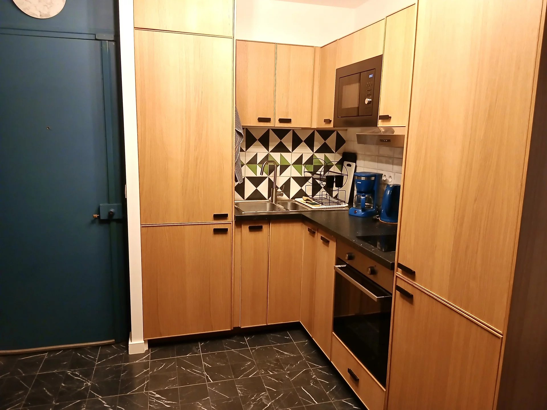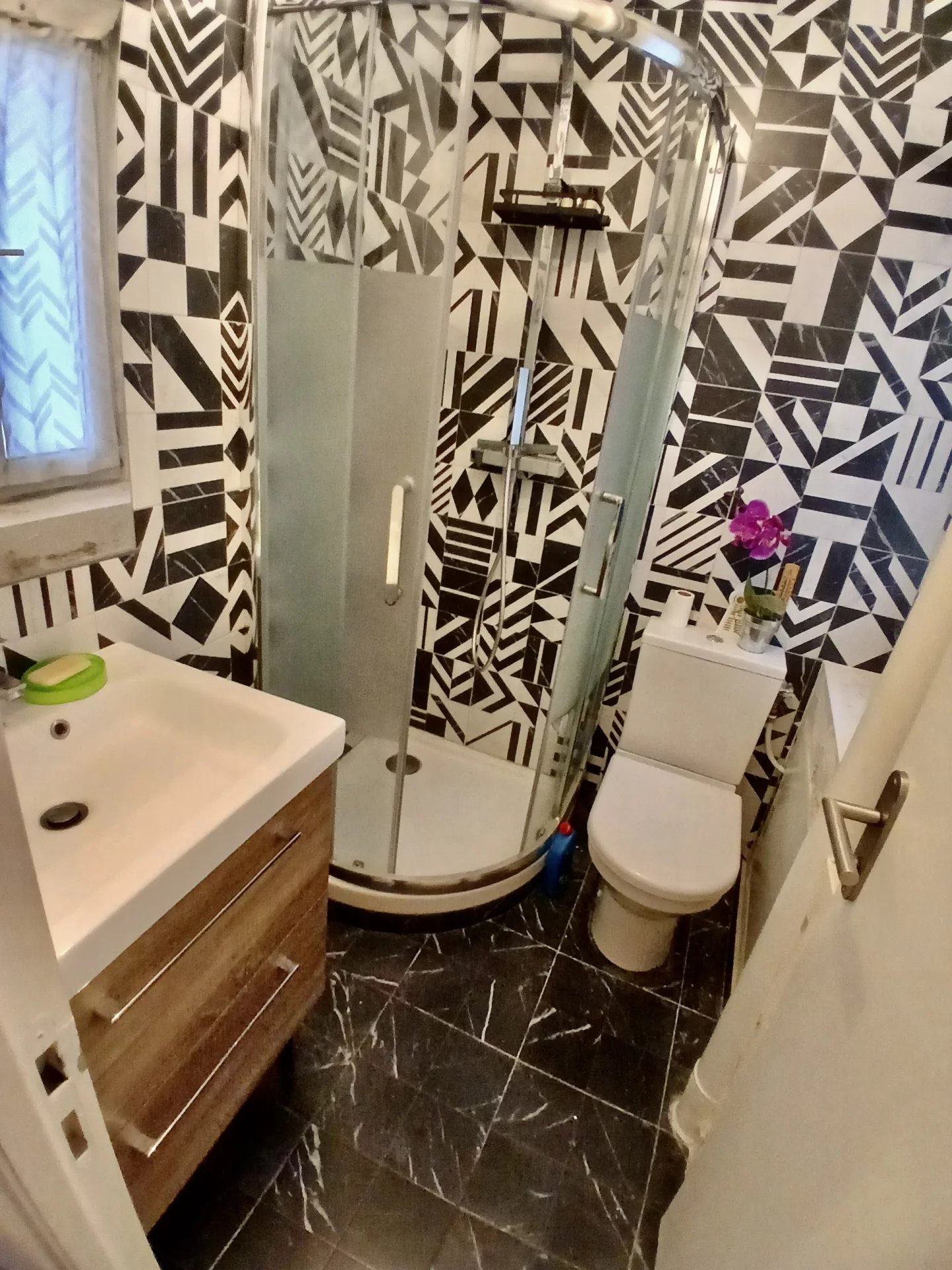 Il se compose d'un séjour lumineux avec cuisine élégamment intégrée, d'une chambre confortable baignée de lumière naturelle, ainsi qu'une salle d'eau raffinée avec fenêtre.