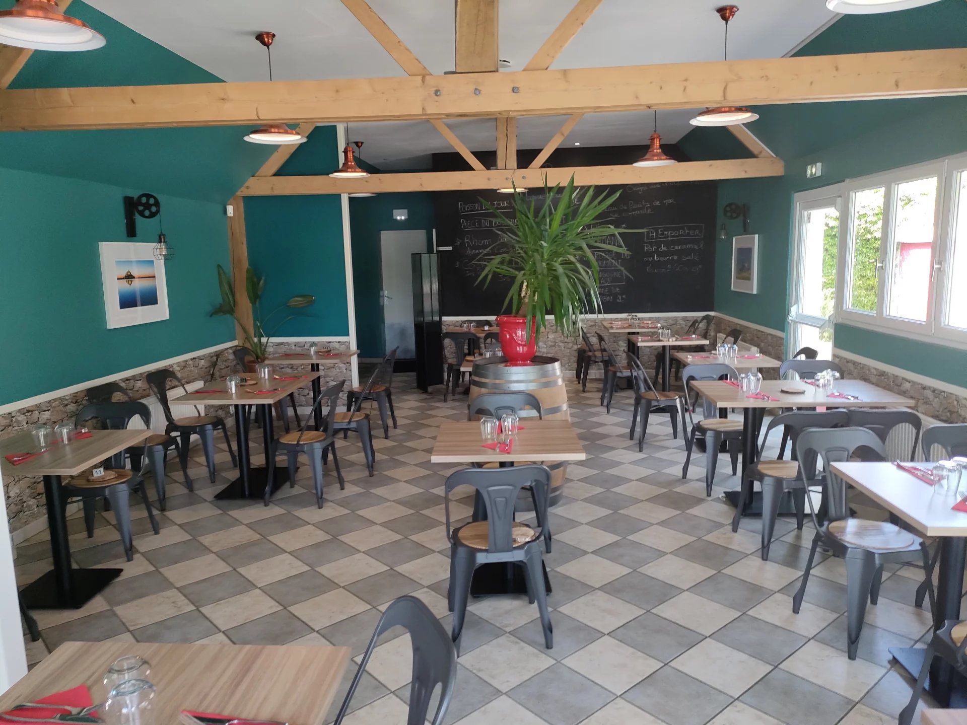 Capacité de 58 places en intérieur (2 salles) et de 36 couverts en terrasse.