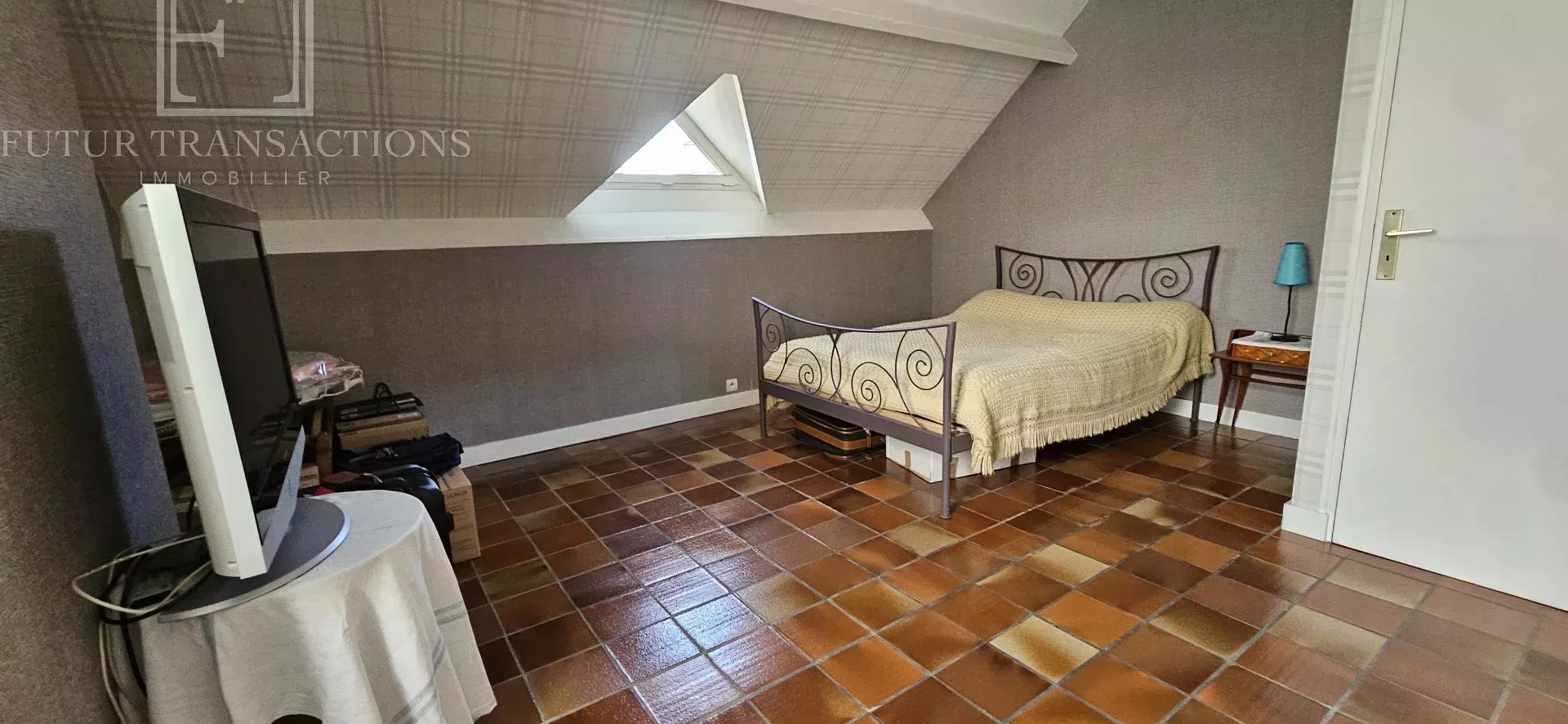 La maison offre quatre chambres, dont une de plain-pied avec salle de bains, ainsi que trois chambres à l’étage et une salle de bains. Garage double, grande buanderie, atelier, pièce de rangement et beau jardin arboré. Conformément à l’article L. 561-5 du Code monétaire et financier, une pièce d’identité ou un passeport sera demandé pour toute visite.