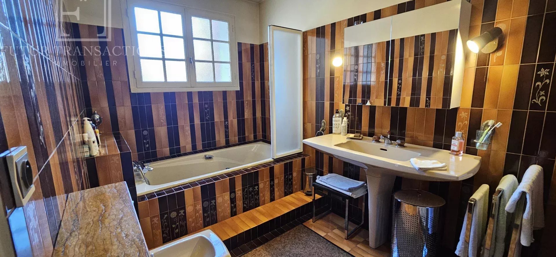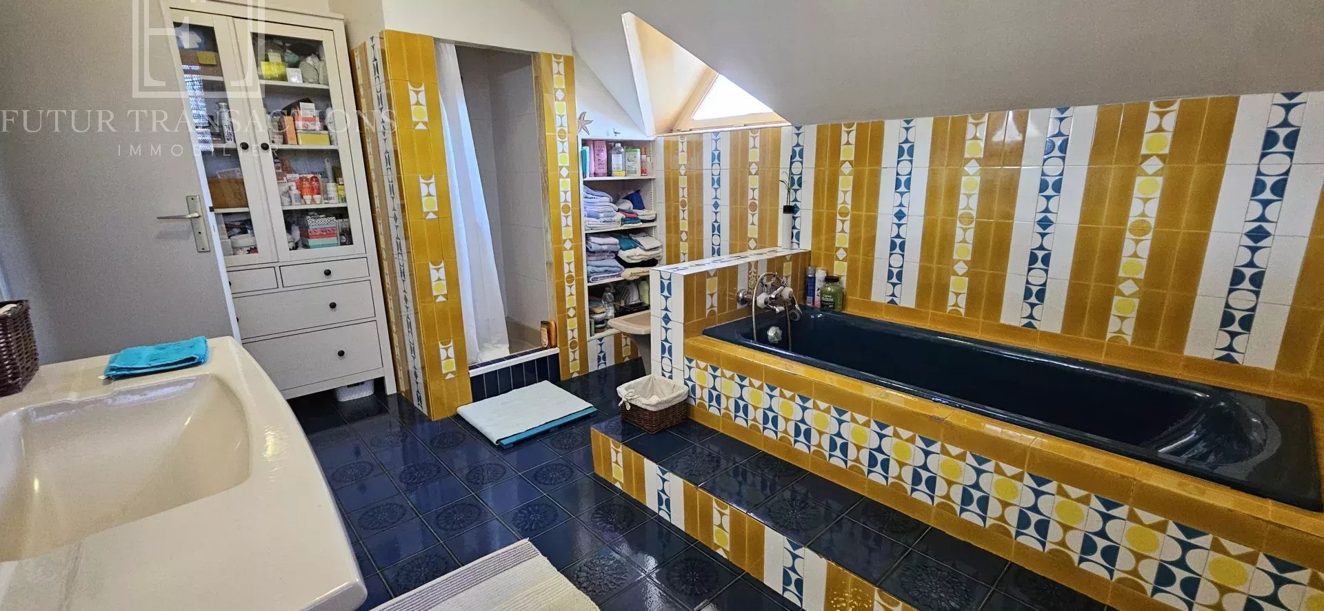 D’une surface totale de 260 m², elle se compose de 154 m² habitables et d’un sous-sol de 105 m² avec fenêtres et belle hauteur sous plafond. Les volumes généreux, dès l’entrée, se prolongent sur un vaste séjour/salle à manger traversant de 40,43 m² avec cheminée, ainsi qu’une grande cuisine dinatoire entièrement équipée.