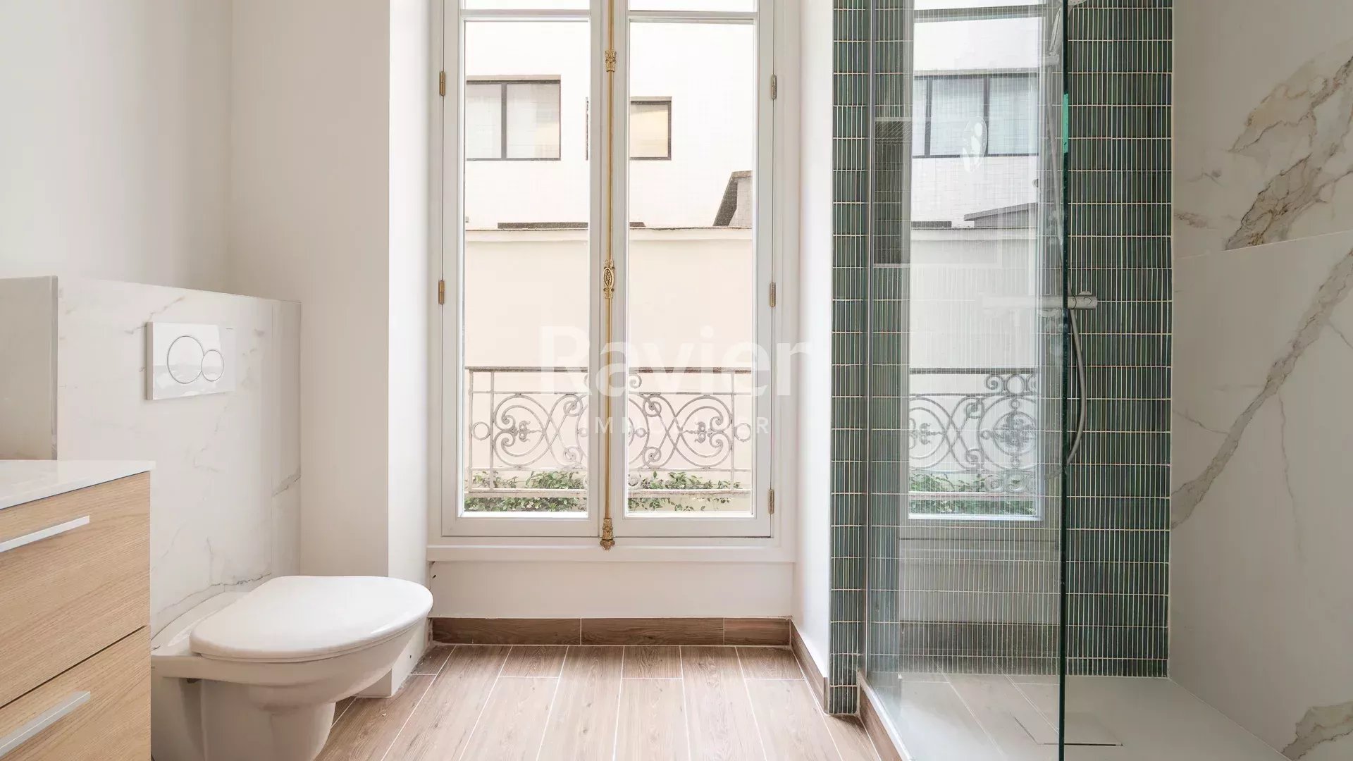 Au premier étage, ce bien rare vous séduira par ses volumes généreux et son agencement optimisé. Il offre une vue dégagée et exclusive sur une cour arborée, garantissant un cadre de vie paisible en plein Paris.