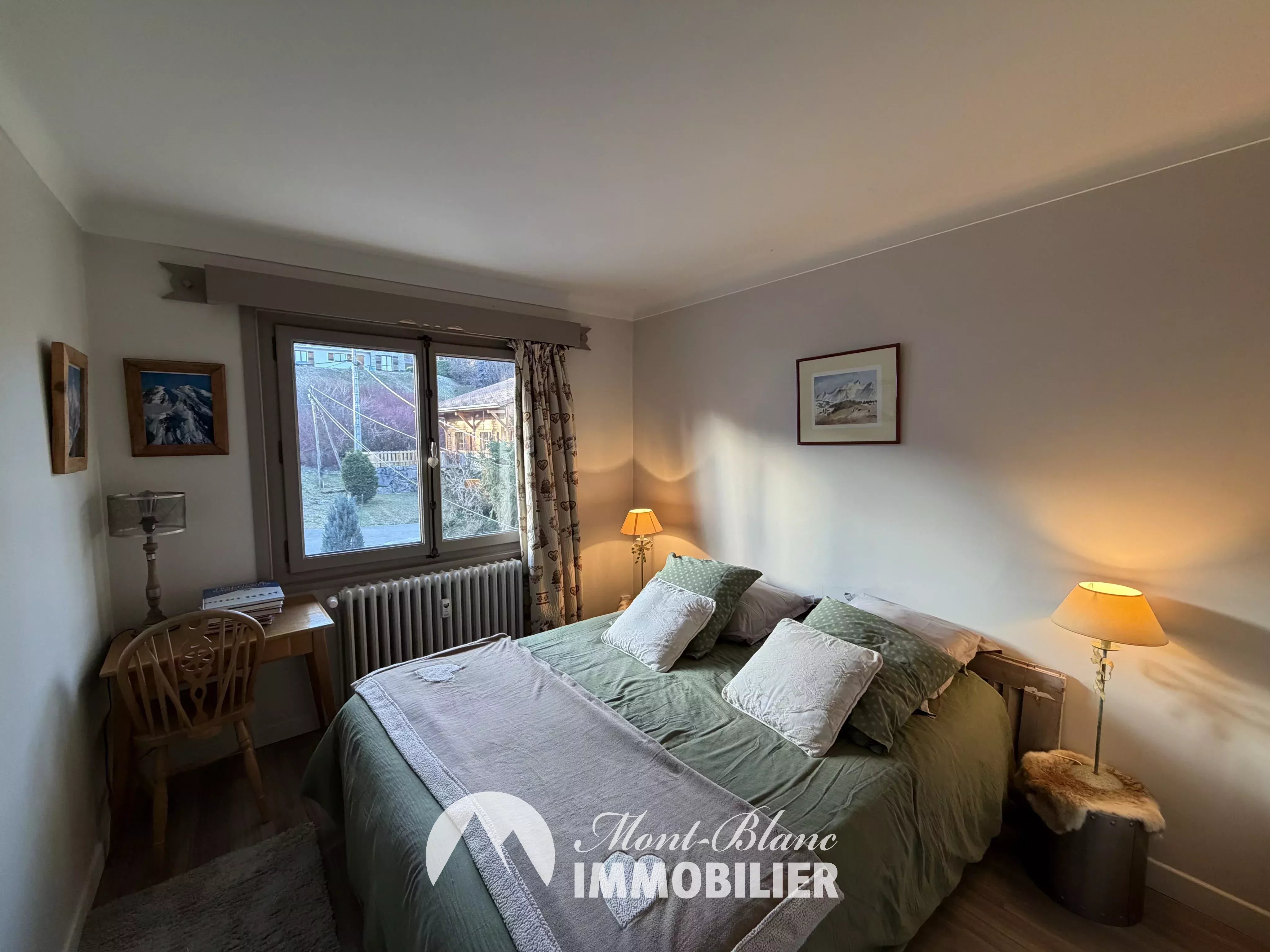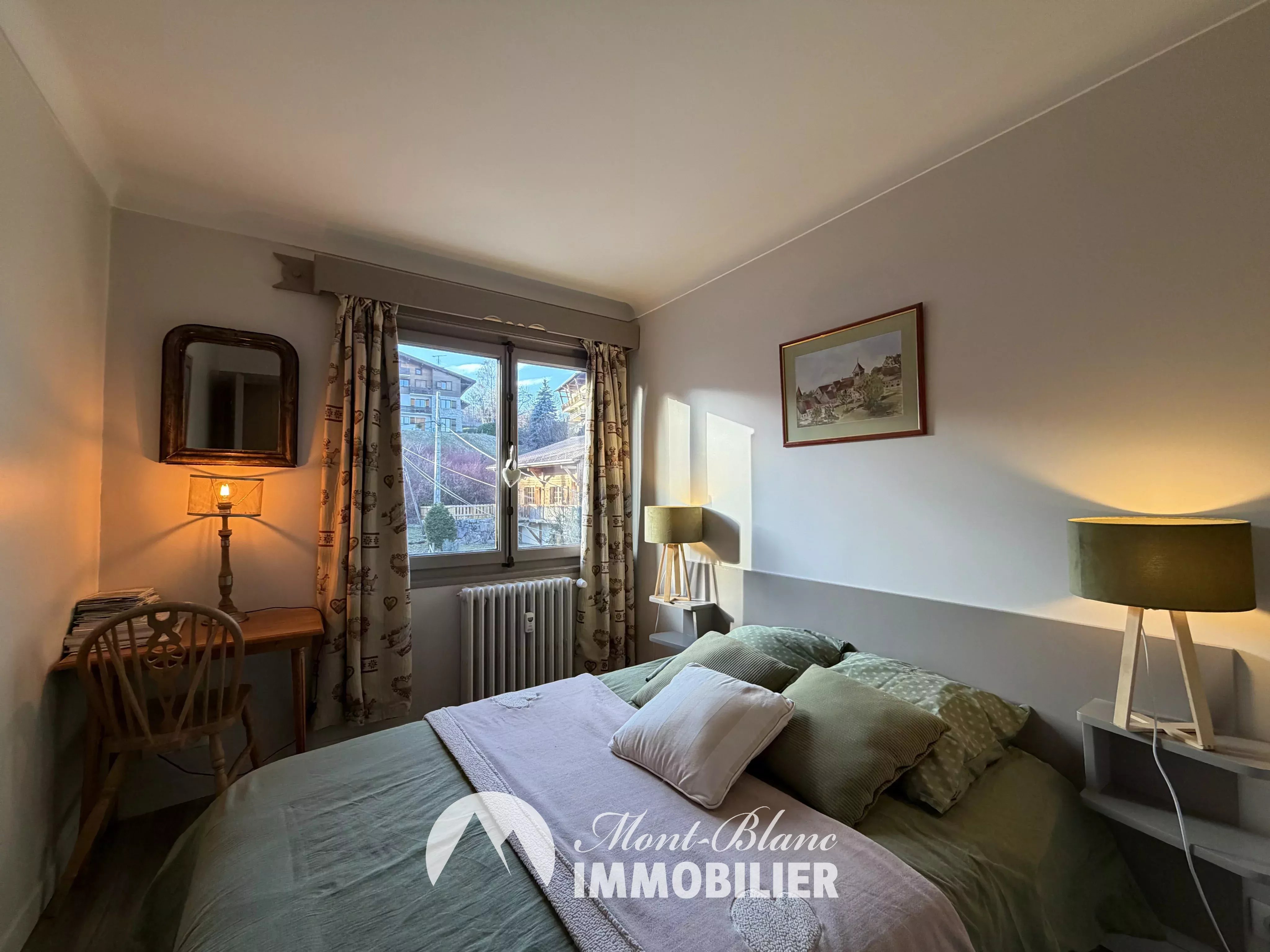 Situé au sein d’une petite copropriété, à proximité immédiate du centre du village, cet appartement 3 pièces de 42,7 m², récemment rénové, séduit par son charme. L’appartement offre une vue panoramique exceptionnelle sur le Mont-Blanc, sa chaîne ainsi que sur la chaîne des Fiz, véritable atout pour les amateurs de montagne et de paysages grandioses. Il se compose d’un séjour lumineux, d’une cuisine entièrement équipée, de deux chambres, ainsi que d’une salle de bains avec WC. L’agencement optimisé et la rénovation récente confèrent à ce bien un cadre de vie confortable et fonctionnel. Un bien rare à la vente, idéal en pied-à-terre à la montagne ou pour un investissement plaisir, au cœur de l’une des plus belles stations du Pays du Mont-Blanc.