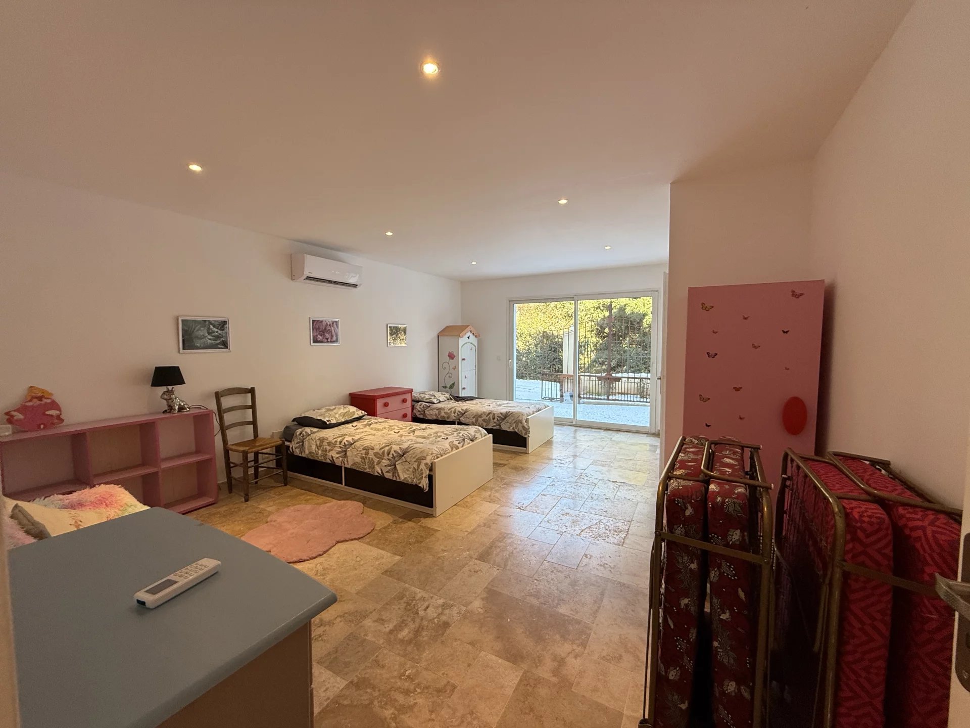 A l'étage, un vaste séjour, avec une belle cuisine ouverte moderne, le tout s'ouvrant sur une belle terrasse exposée plein sud. Les extérieurs sont un véritable atout :