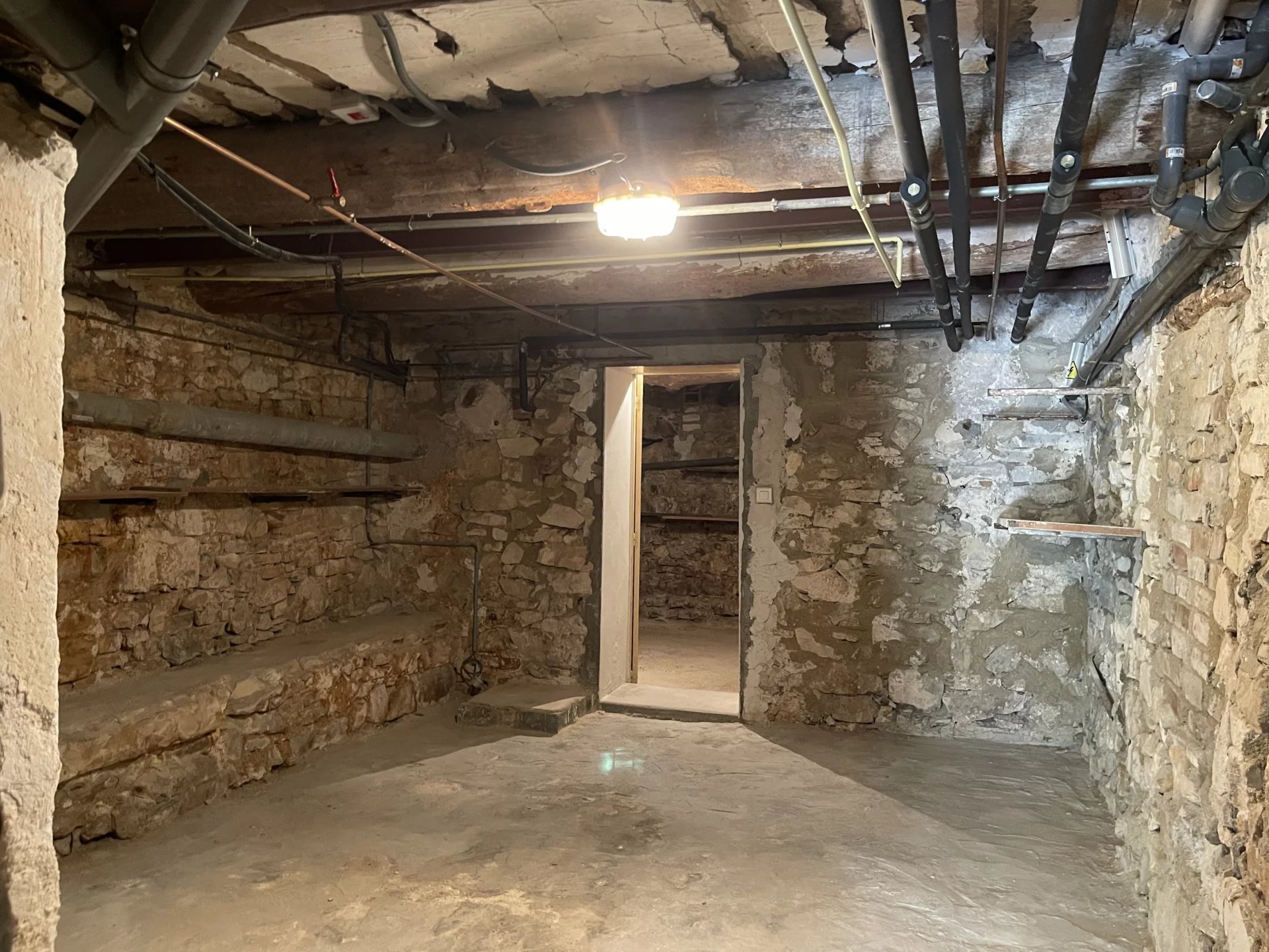 Maison de village, mitoyenne, rénovée, orientée Sud-Ouest, de 193,18 m² de surface au sol totale dont 130,48 m² habitables, sur 3 niveaux, balcon avec brise-vue végétalisé d'un côté, garage avec emplacement voiture devant le garage, et 2 caves. Bénéficiant de 2 entrées, est et ouest, le rez-de-chaussée, se compose d'une pièce à vivre avec cuisine ouverte aménagée et semi-équipée (plaque de cuisson, hotte, four), dégagement avec wc, et accès par escalier intérieur aux caves et garage, salon ouvrant sur une agréable terrasse couverte dont un escalier extérieur rejoint le garage. A l'étage, 2 grandes chambres (14 et 16 m²), salle de bains (douche et baignoire). Au 2e étage une chambre 29 m².