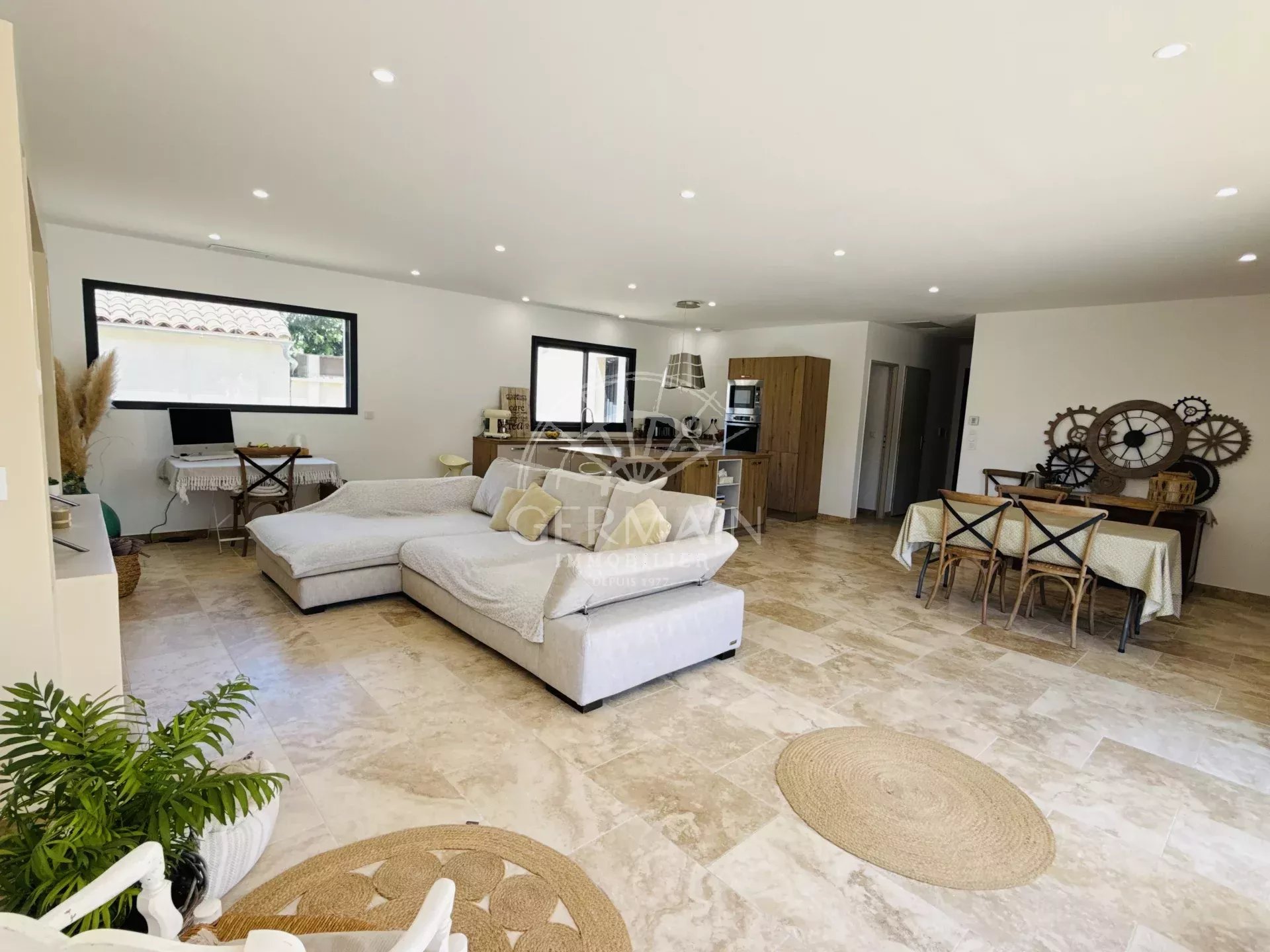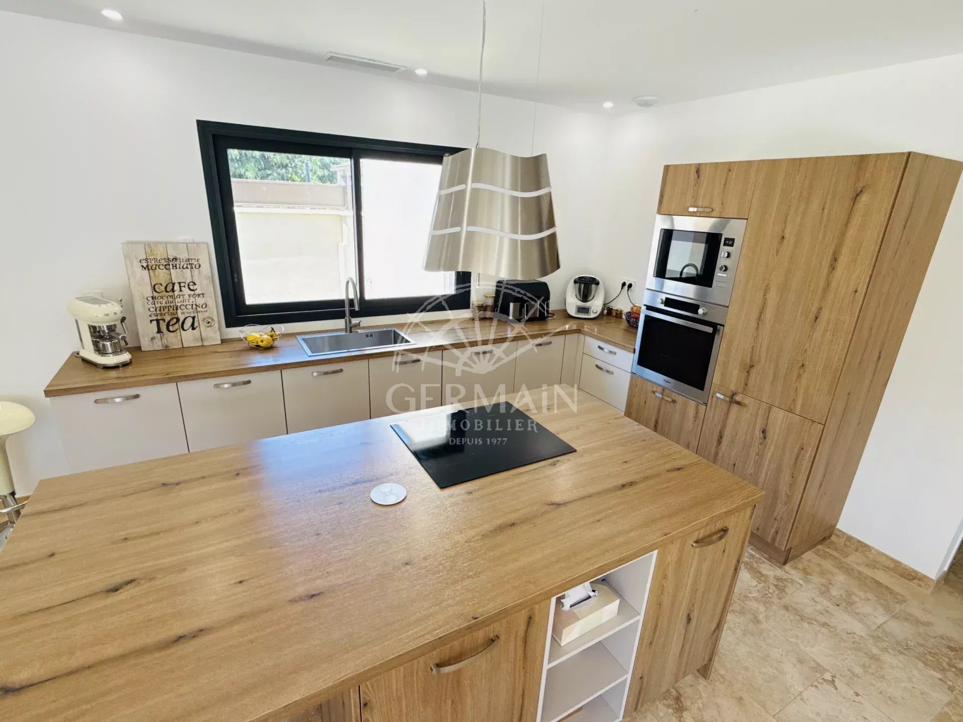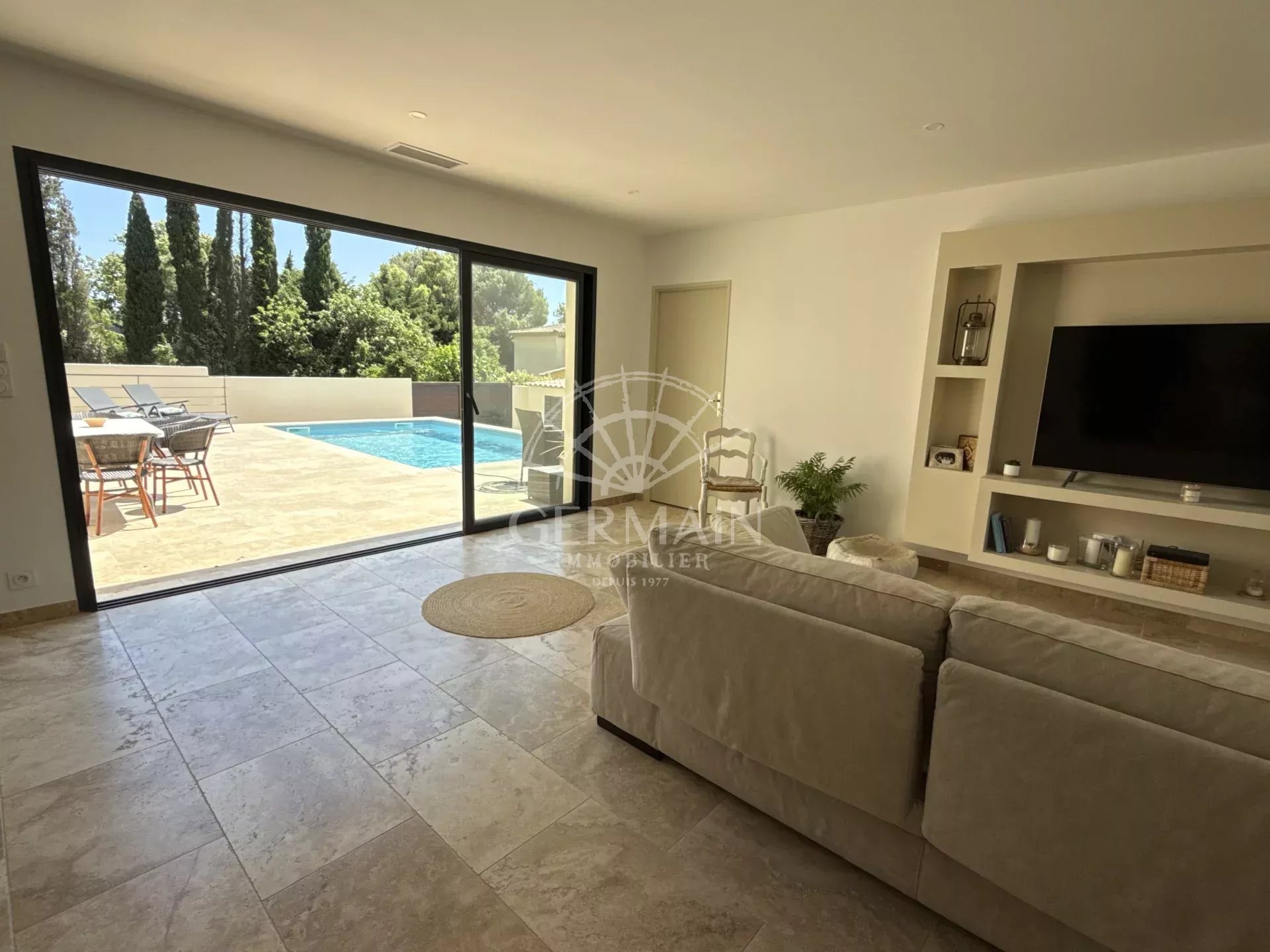 L'agence Germain vous propose cette magnifique maison neuve de plain-pied d'environ 130 m², avec piscine et garage, implantée sur une parcelle de 600 m².