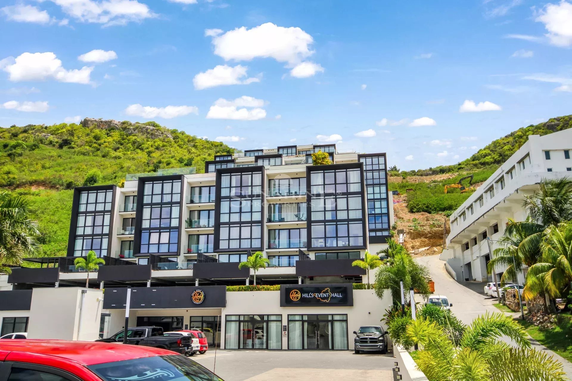The Hills Residence is a new development of 152 apartments in four buildings, each with a rooftop pool. They are situated on the Hillside with a 20-unit roadside shopping mall located in the heart of all the action in Simpson Bay, where nearly everything, including the beach, shopping, bars, a casino, and an array of restaurants, are all a short walk away.