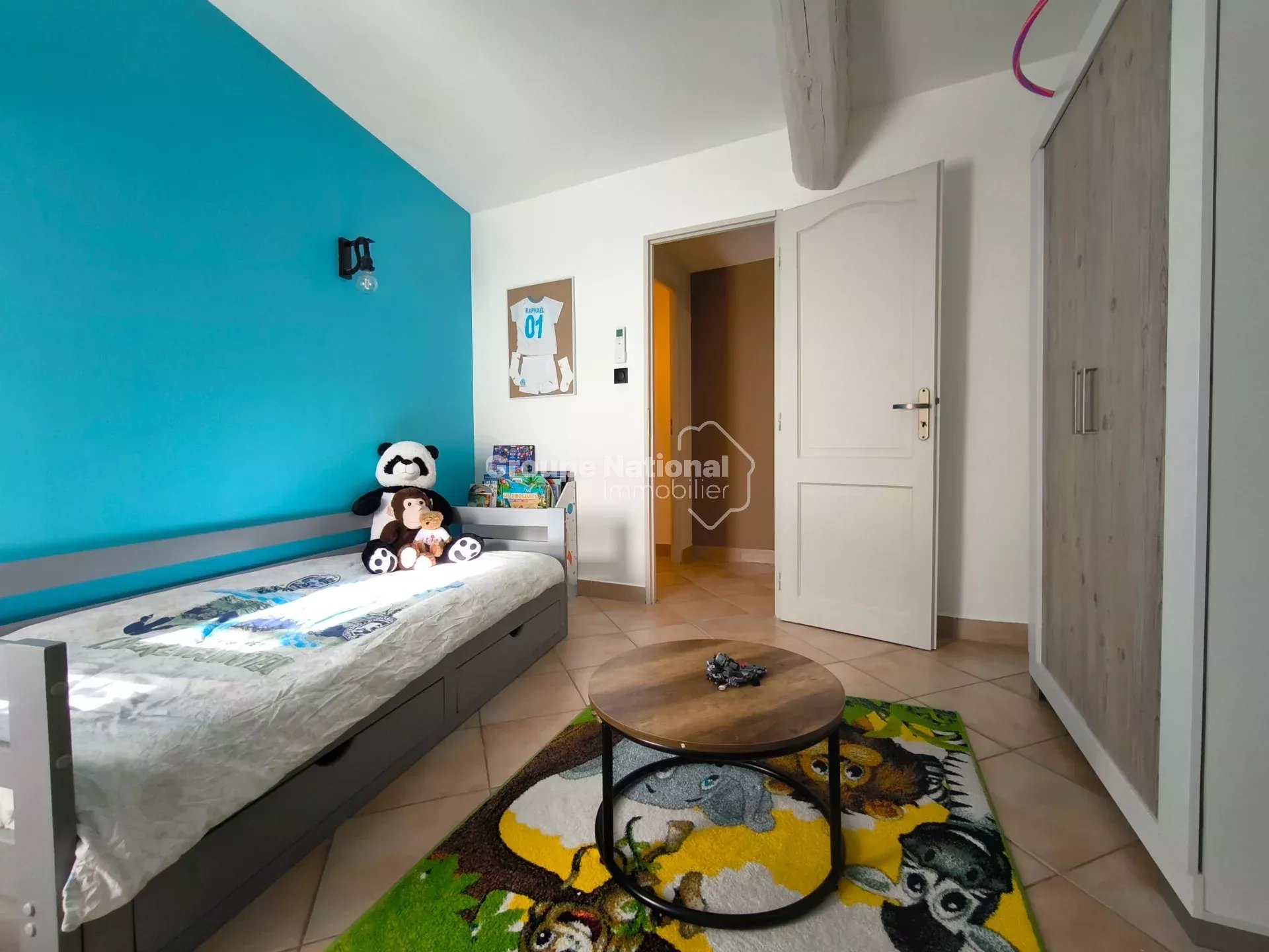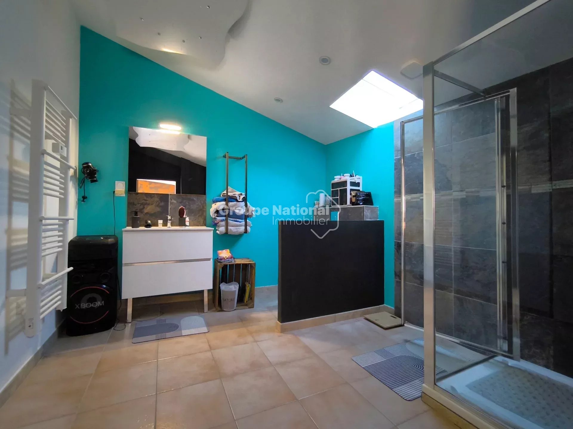 Au rez-de-chaussée, vous trouverez une cuisine équipée et aménagée/salle à manger, agrémentée d’un poêle à granulés, avec un accès direct à un jardin entièrement carrelé. Le charme de l’ancien est préservé grâce au plafond à la provençale avec poutres apparentes.