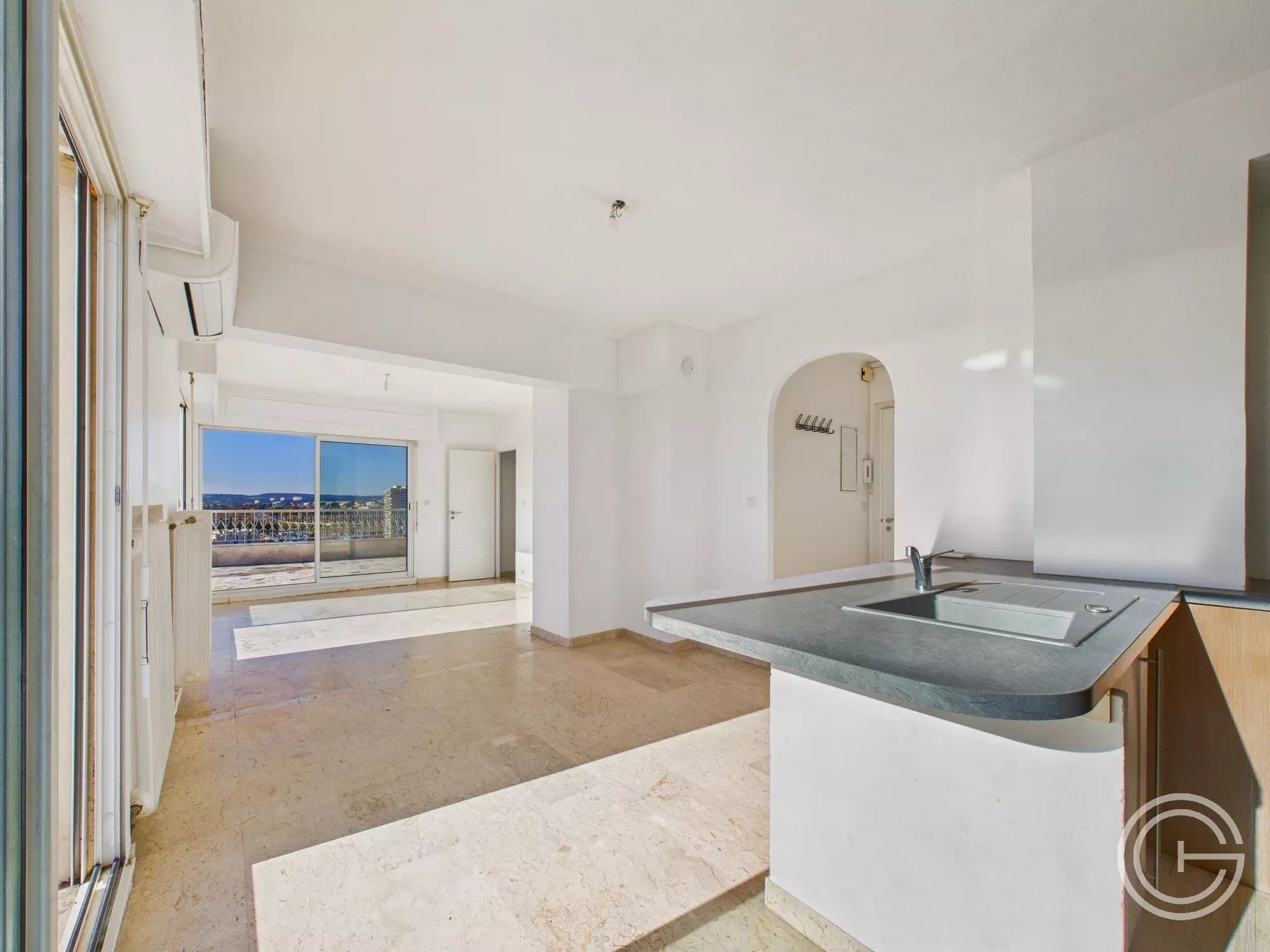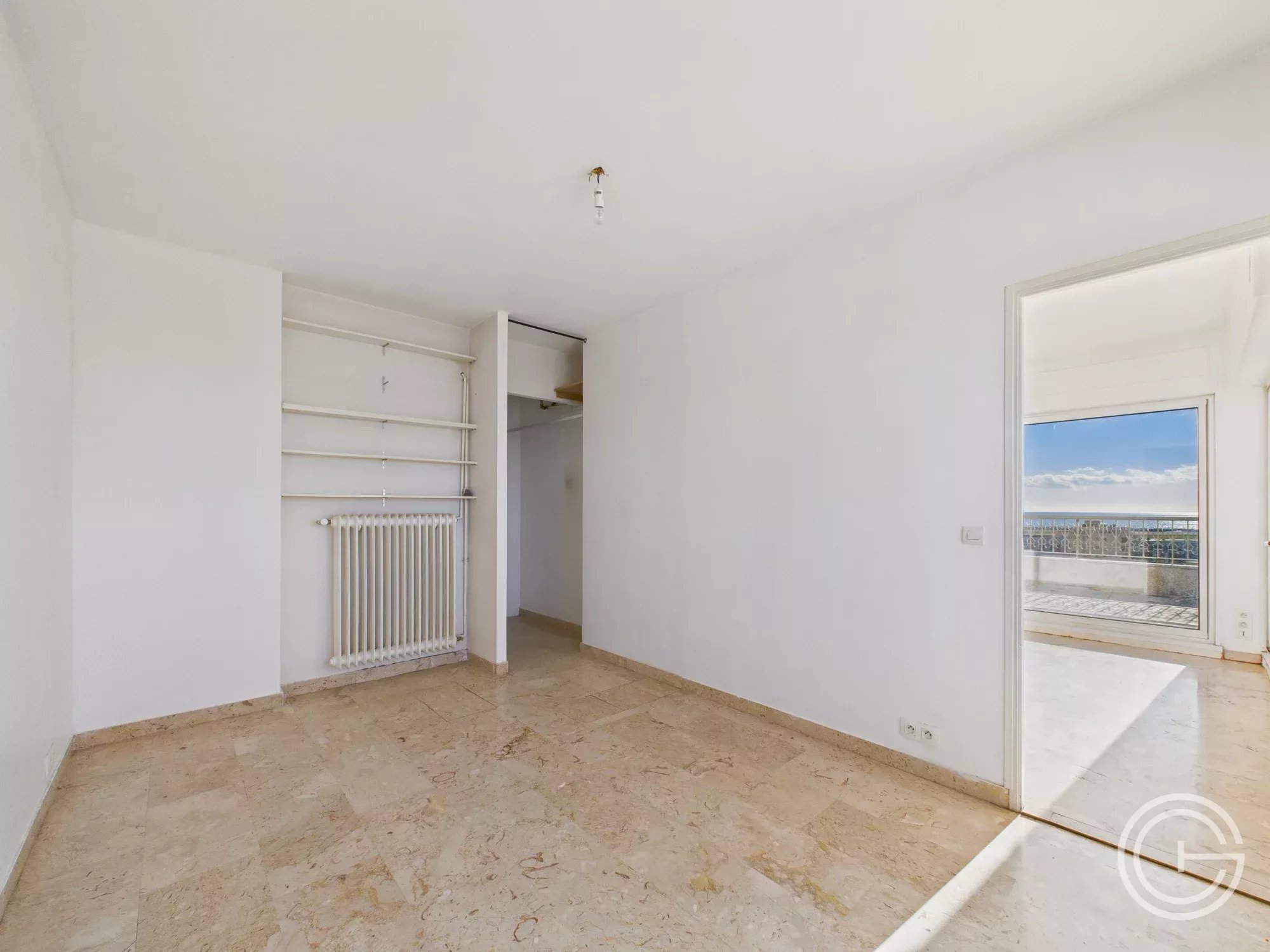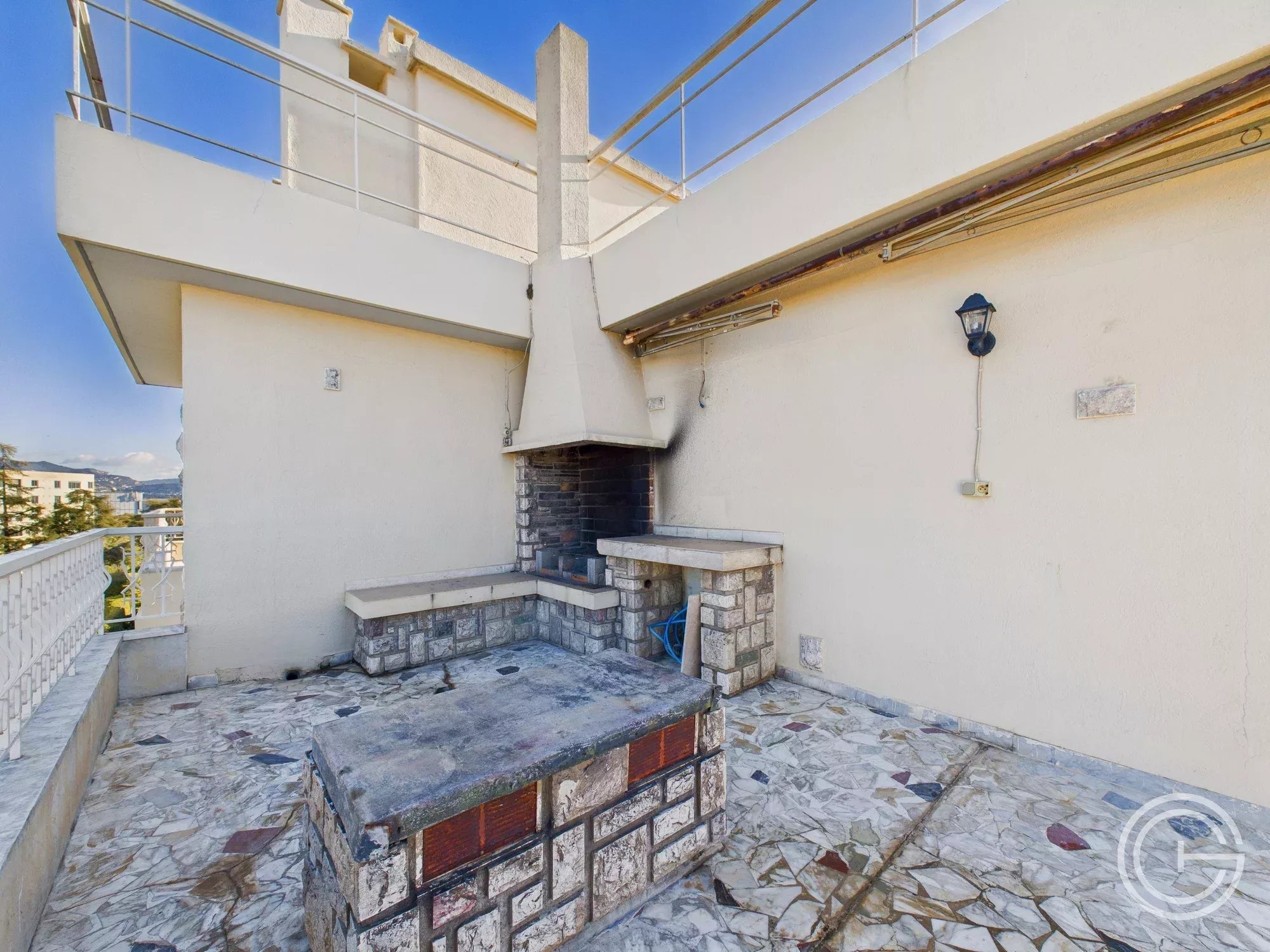 Appartement 2 pièces + Terrasse + Cave - Dernier étage - Rue Saïda - NICE ImmoVendu vous invite à découvrir en EXCLUSIVITÉ cet appartement 2 pièces de 52m² au 3ème et dernier étage SANS ASCENSEUR avec terrasse de 132m² triple exposition SUD / EST / OUEST. Entrée avec placard, séjour avec cuisine meublée de 31m², chambre de 13m² avec dressing, salle de bains avec WC. L'appartement dispose du double vitrage et de la climatisation dans le salon. La terrasse dispose d'un barbecue côté NORD. VUE dégagée MER à 180°. Cave au sous-sol et parking en location 100 € / mois. N'hésitez à consulter la visite virtuelle sur notre site. Charges mensuelles : 300 € / Mois comprenant EF / EC / CHAUFFAGE. Taxe foncière : 1.284 € Nb de lots : 6 DPE F