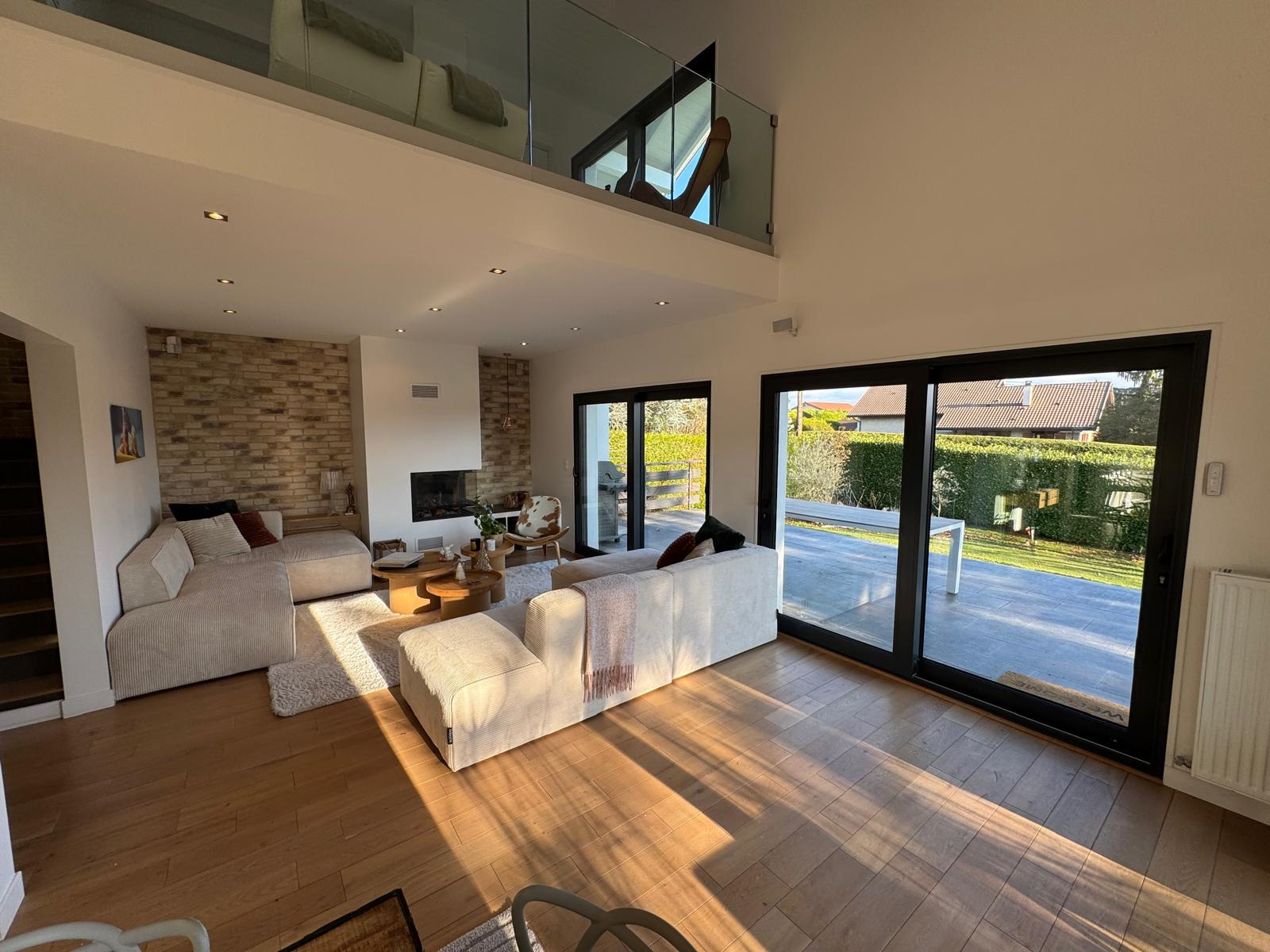 PREVESSIN MOENS 01280 A deux du bus pour Genève et du centre de village, magnifique villa individuelle de plus de 180m2 entièrement rénovée récemment avec des matériaux de grande qualité. Elle est très agréable à vivre et surtout baignée de lumière. Elle dispose d'un très beau jardin de presque 1300m2 avec possibilité d'y accueillir une piscine. Pas de vis-à-vis direct ! Elle se compose :