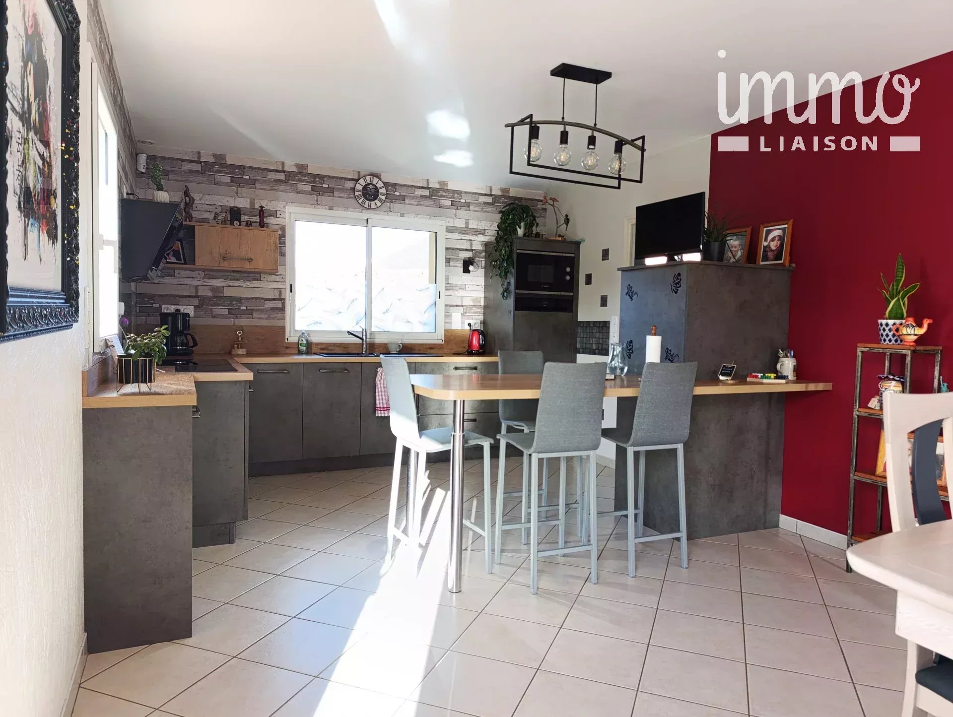 Une cuisine aménagée et équipée, ouverte sur la salle à manger