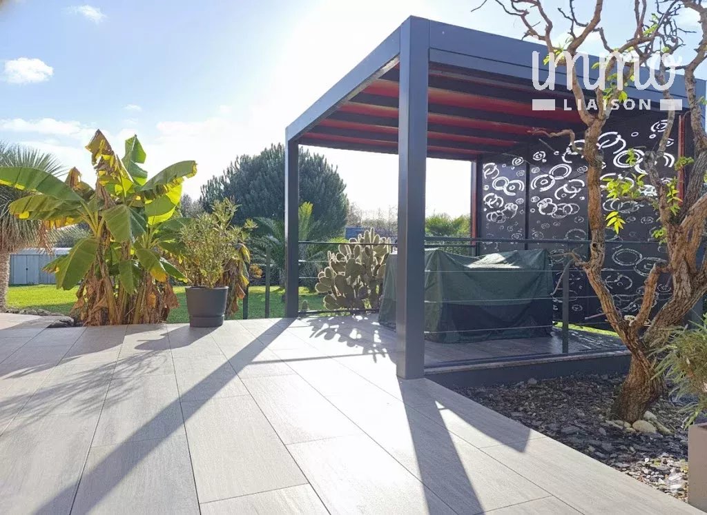 La grande terrasse exposée Sud-Ouest permet de profiter pleinement de ce cadre verdoyant. Elle est équipée d’une pergola ainsi que d’un store banne électrique, idéal pour créer un espace extérieur confortable.