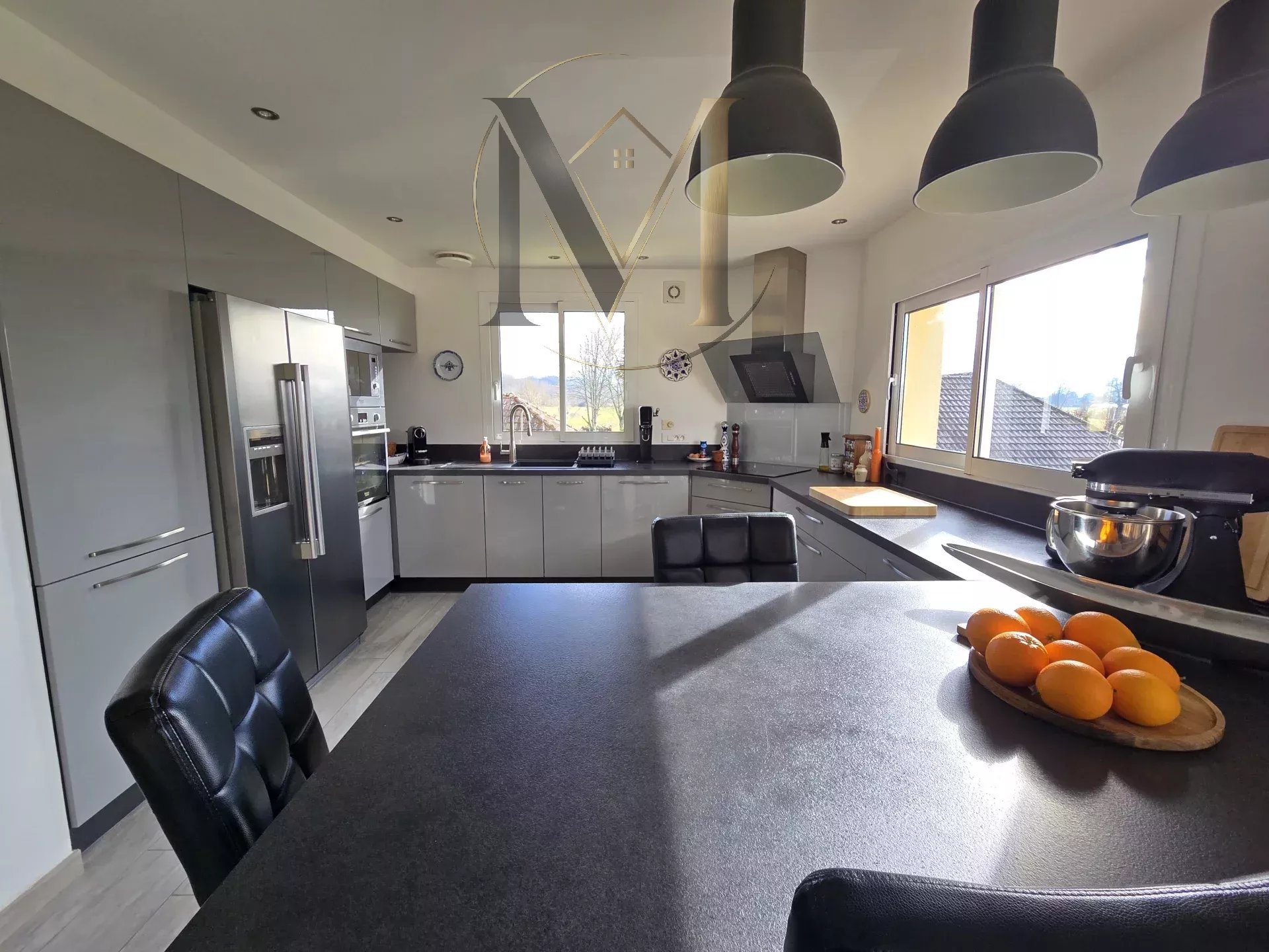 - Grande cuisine entièrement équipée, fonctionnelle et conviviale, dispose d’un cellier attenant.