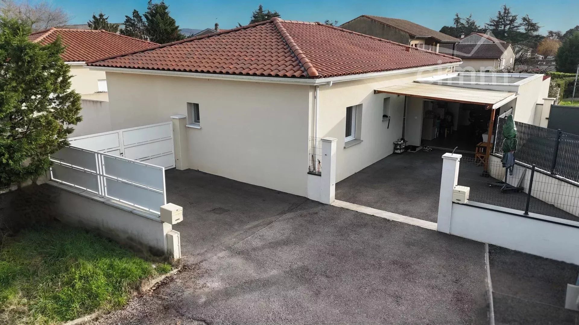 Située sur la commune d’Andancette, au Creux-de-la-Thine, dans un environnement résidentiel calme, cette maison individuelle de plain-pied de 108 m², construite selon les normes RT 2012, est implantée sur un terrain plat, clos et exposé plein sud de 416 m². Elle offre une pièce de vie spacieuse et très lumineuse de 55 m², composée d’un salon-séjour avec 4 grandes baies vitrées donnant accès à la terrasse carrelée, et d’une cuisine ouverte entièrement équipée de qualité. L’espace nuit se compose de trois chambres, dont deux avec des rangements intégrés, ainsi que d’une salle d’eau moderne avec point d’eau pour vos machines et d’un WC indépendant. Une entrée avec placard ainsi qu’un accès au garage complètent l’intérieur. Côté équipements, la maison dispose d’un chauffage au sol par pompe à chaleur réversible avec plancher rafraîchissant, de menuiseries double vitrage avec volets roulants électriques, de la fibre. Côté dépendances, vous profiterez d’un grand garage attenant de 30 m², comprenant une seconde cuisine équipée de qualité, portail motorisé, isolé et carrelé, ainsi que d’un carport, d’un atelier indépendant et d’un parking goudronné. Points forts : • Très grande luminosité et beaux volumes • Maison fonctionnelle et récente • Environnement calme • Proximité des axes : autoroute à 8 min (Chanas), gare à 5 min (Saint-Rambert-d’Albon) • 25 min de Vienne, 50 min de Lyon 👉 Une maison fonctionnelle, lumineuse et parfaitement entretenue – à visiter sans tarder. Honoraires à la charge du vendeur - Montant estimé des dépenses annuelles d'énergie pour un usage standard : 310€ ~ 460€ - Remy GRINGET - Agent commercial - EI - RSAC Romans 920827797 - RCS 40834475200154 - Caisse de garantie QBE L'immobilier vous intéresse, contactez-moi
