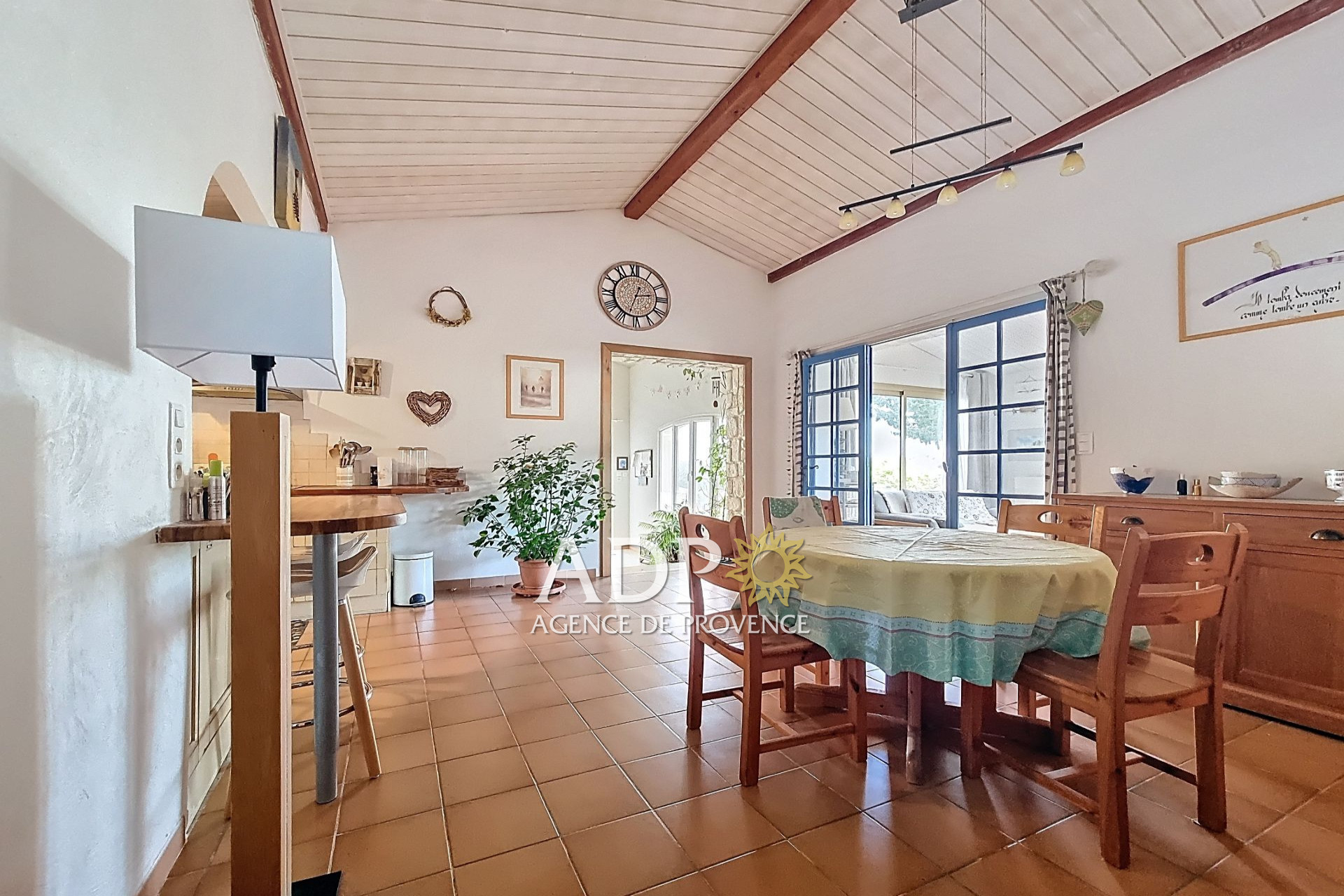 Le coeur de l'habitation est articulé autour de la pièce de vie. La salle à manger communique directement avec la cuisine d'une part, et avec un lumineux salon de l'autre part équipé d'une double baie vitrée donnant accès à une terrasse aménagée, exposée Sud.