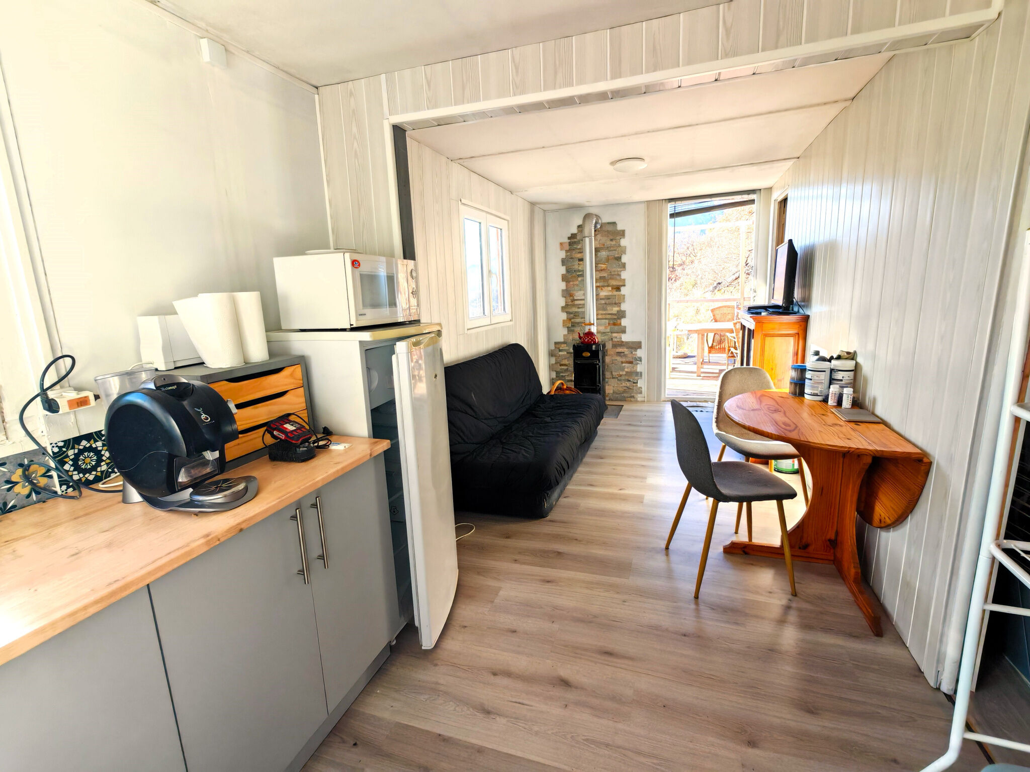 EXCLUSIVITE Sur la commune de Lantosque, dans un quartier ensoleillé Un Mobil-Home (avec façade et toiture traditionnelle) d'environ 29,8 m² composé : Un séjour / cuisine (15 m²) avec poêle à bois et accès terrasse, une chambre (7,4 m²), un bureau (ou coin nuit, (4,3 m²)), une salle de douche / wc (3,1 m²) + Terrasse (20 m²), abri de jardin (5 m²) Raccordé à l'eau et l'électricité, assainissement par fosse septique(à remettre au normes), poêle à bois Le tout sur un terrain de 2464 m², une vue panoramique sur les montagnes environnantes, Expo Sud / Sud / est, ensoleillé et au calme Accès pédèstre 50m Taxe foncière : 187 euros / an Les informations sur les riques auxquels ce bien est exposé sont disponibles sur le site Géorisques http://georisques.gouv.fr Honoraires charges vendeurs Bien proposé par Grégory Ludwig Agent commercial 07 67 89 22 86 1.Informations LOI ALUR :