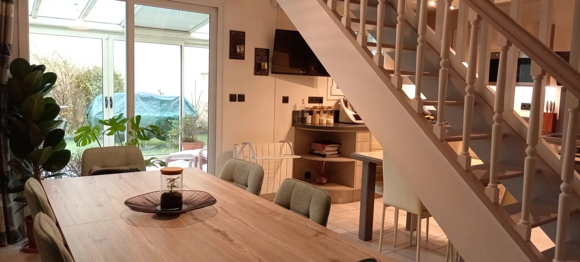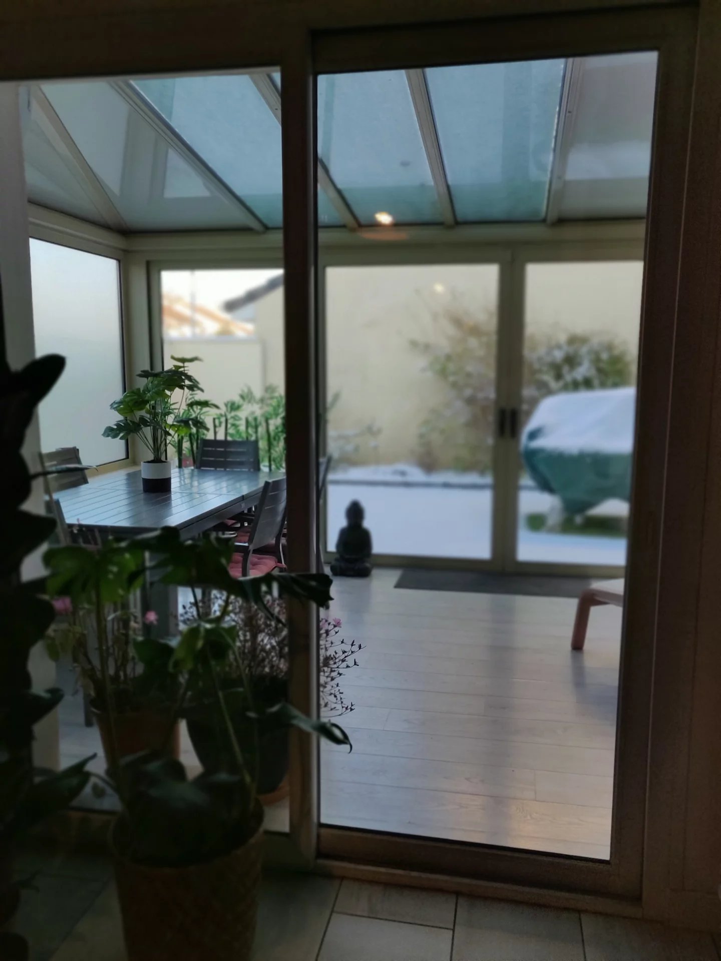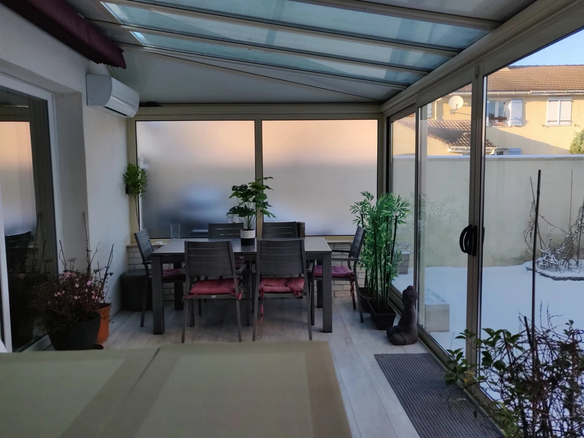 La véranda constitue un plus et une vraie pièce de vie puisqu'elle est isolée et chauffée (climatisation réversible)