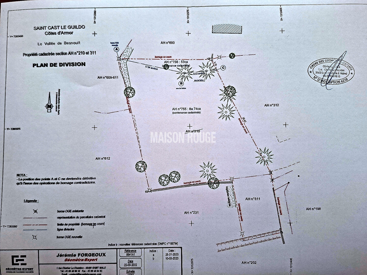 Terrain constructible d'exception avec vue mer - Quartier recherché des Mielles à Saint-Cast-le-Guildo Au coeur de Saint-Cast-le-Guildo, dans le très convoité quartier des Mielles, ce terrain constructible de 1 097 m² bénéficie d'un emplacement remarquable, conjuguant une vue mer appréciable, un calme absolu et un accès immédiat à la plage ainsi qu'aux commerces du centre. Implanté au fond d'une impasse, il profite d'un environnement arboré et préservé, offrant une rare sensation de quiétude en plein hyper-centre, à l'abri de toute nuisance. Un permis de construire, accordé en février 2023 et purgé de tout recours, permet la réalisation d'une maison individuelle . Libre de constructeur, ce terrain offre un projet prêt à être lancé sans délai. Une opportunité rare pour concrétiser un projet de vie ou créer une résidence secondaire d'exception dans l'un des secteurs les plus recherchés de Saint-Cast-le-Guildo. Prix FAI : 461 120 euros dont 4.80 % honoraires TTC à la charge de l'acquéreur. Caroline GICQUEL (EI) Agent Commercial - Numéro RSAC : 525171054 - SAINT MALO.
