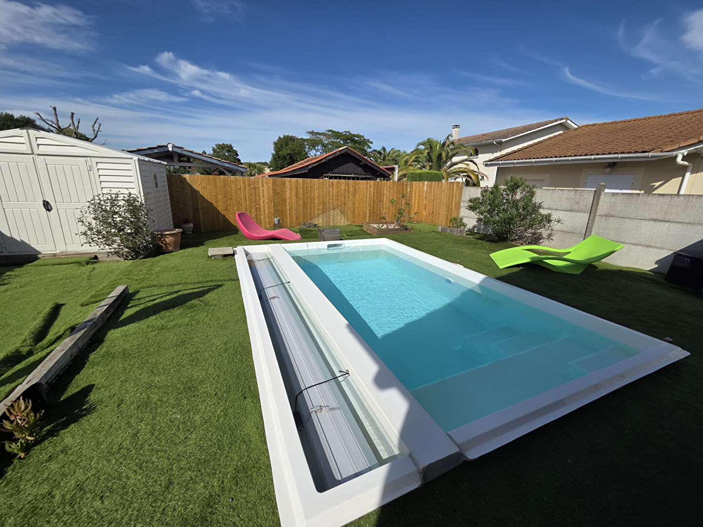**** OPPORTUNITE A SAISIR**** A VENDRE / A ACHETER Dans un environnement résidentiel recherché, à proximité immédiate des commerces et commodités, venez découvrir cette maison aspect longère contemporaine, prête à vivre, alliant confort moderne et fonctionnalité. Dès l'entrée, vous serez séduit par une spacieuse pièce de vie de plus de 40 m², baignée de lumière grâce à sa triple exposition Est, Sud et Ouest. Cet espace convivial accueille une cuisine ouverte, idéale pour les moments de partage en famille ou entre amis. La partie nuit se compose de deux chambres. Vous disposerez également d'une salle d'eau moderne, d'un cellier fonctionnel et de WC indépendants. A l'extérieur, la propriété bénéficie d'un jardin clos d'environ 490 m², propice à la détente. Vous apprécierez particulièrement la piscine chauffée et sécurisée, parfaite pour profiter des beaux jours en toute sérénité. Deux places de stationnement privatives complètent ce bien. Cette maison, prête à emménager, constitue une opportunité idéale pour une résidence principale ou secondaire, dans un cadre calme et agréable, tout en restant proche des services essentiels. La présente annonce immobilière a été rédigée sous la responsabilité éditoriale de Mme Margaux VESCHAMBRE - agent commercial immatriculé au RSAC de Bordeaux sous le numéro 994 991 842. Contacter votre agence ERA Sud BASSIN 05.57.63.34.98 (5.50 % honoraires TTC à la charge de l'acquéreur.)