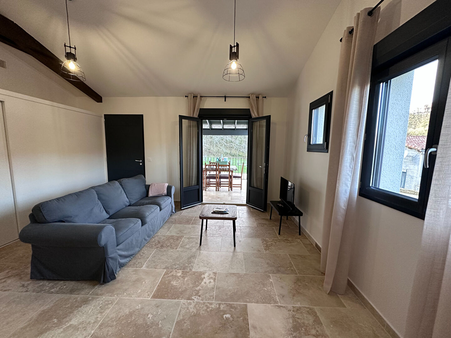 Saint Antonin Noble Val, village médiéval avec toutes les commodités. Bien rare dans le secteur ! Location meublée. Maison neuve de plain pied composée : - Séjour avec placard - Cuisine équipée - Salle d'eau - 2 chambres avec rangements - WC En extérieur vous profiterez d'une terrasse couverte et d'un bout de jardin. Très bien isolée, chauffage et clim avec pompe à chaleur air/air par gainable et cumulus thermodynamique. Disponible ! Référence : 14057