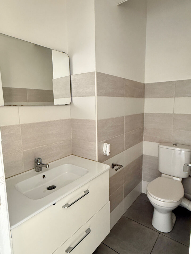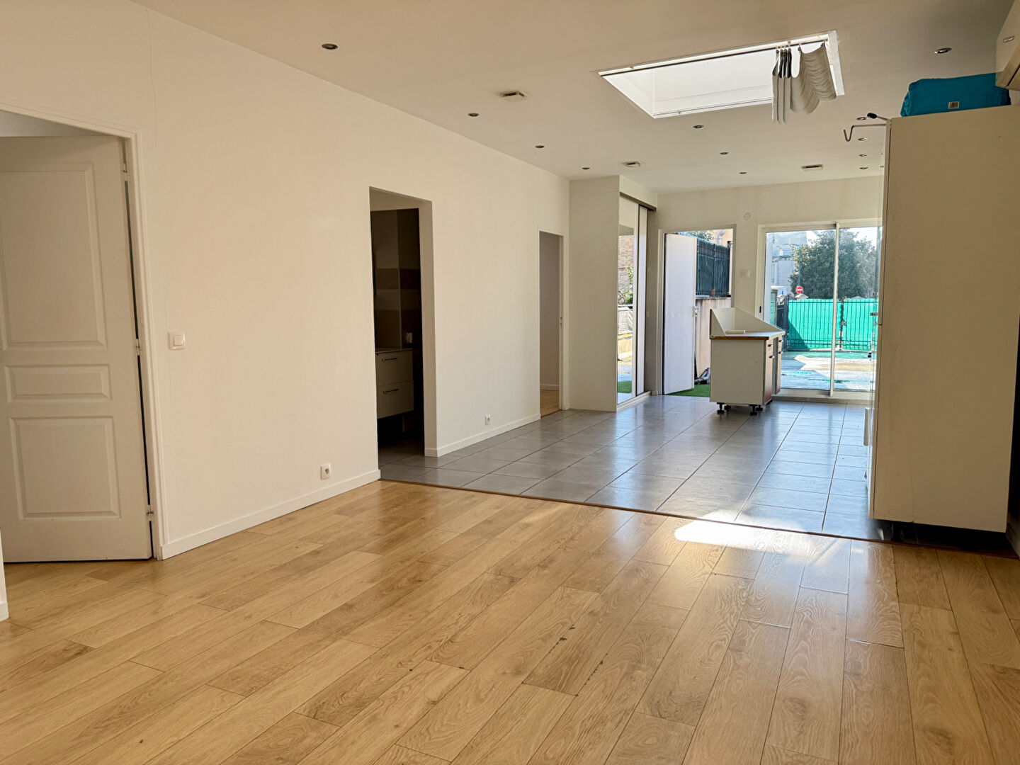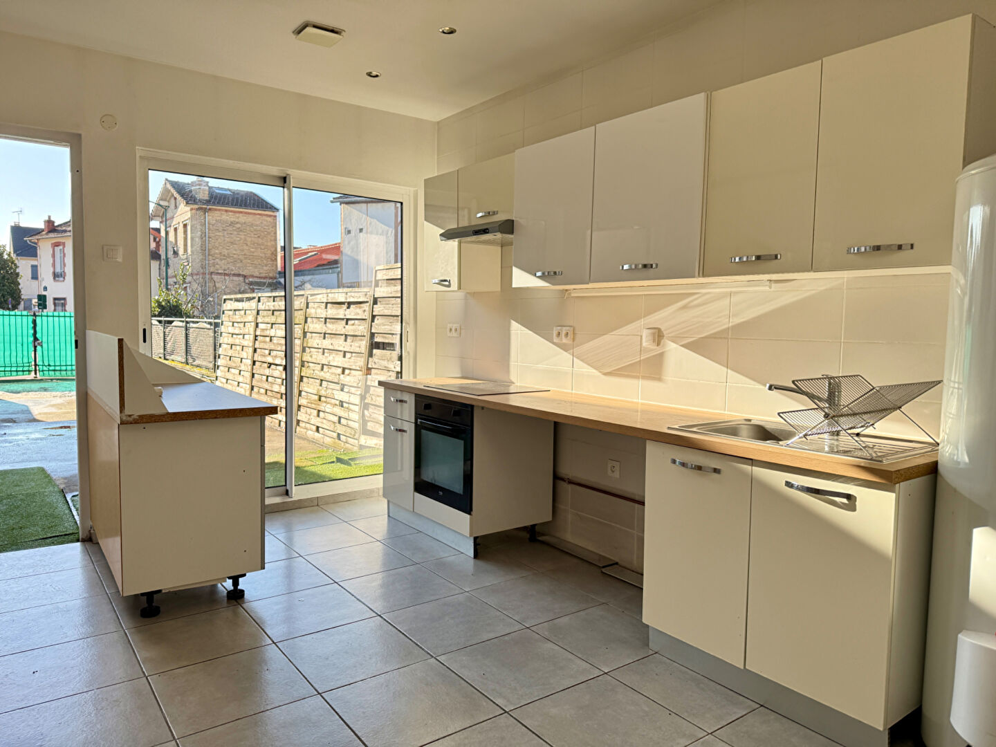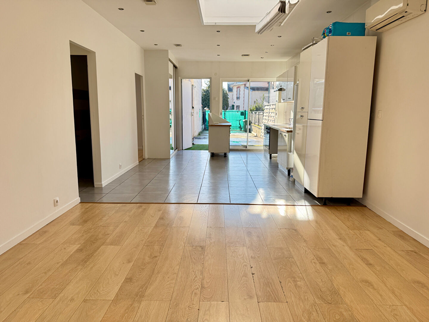 Proche T2, dans rue pavillonnaire calme, maison de 4 pièces principales de plain pied comprenant : entrée sur grande pièce à vivre de 40 m2 environ, 3 chambres équipées chacune d'une salle d'eau privative ( 2 douches et 1 baignoire), wc séparé, terrasse exposée plein Sud et accès voitures. Idéal pour colocation de 3 personnes. Libre de suite.