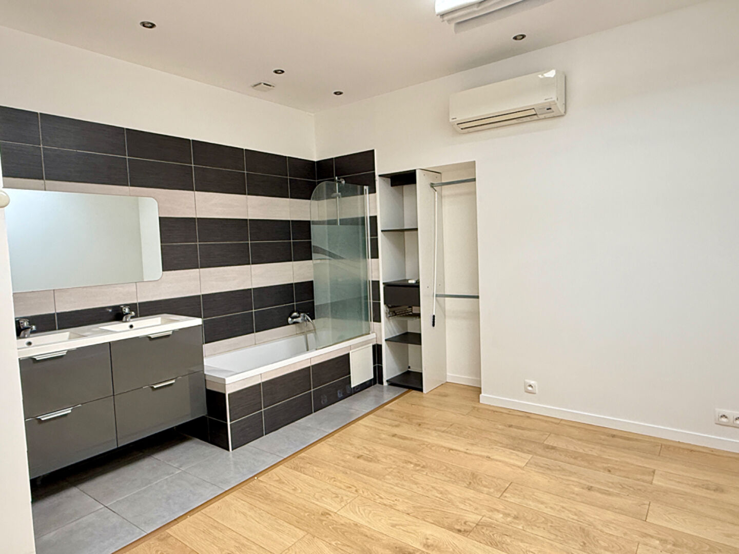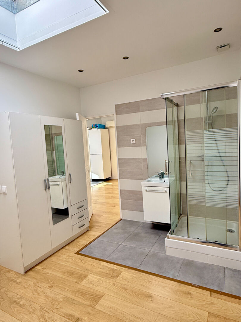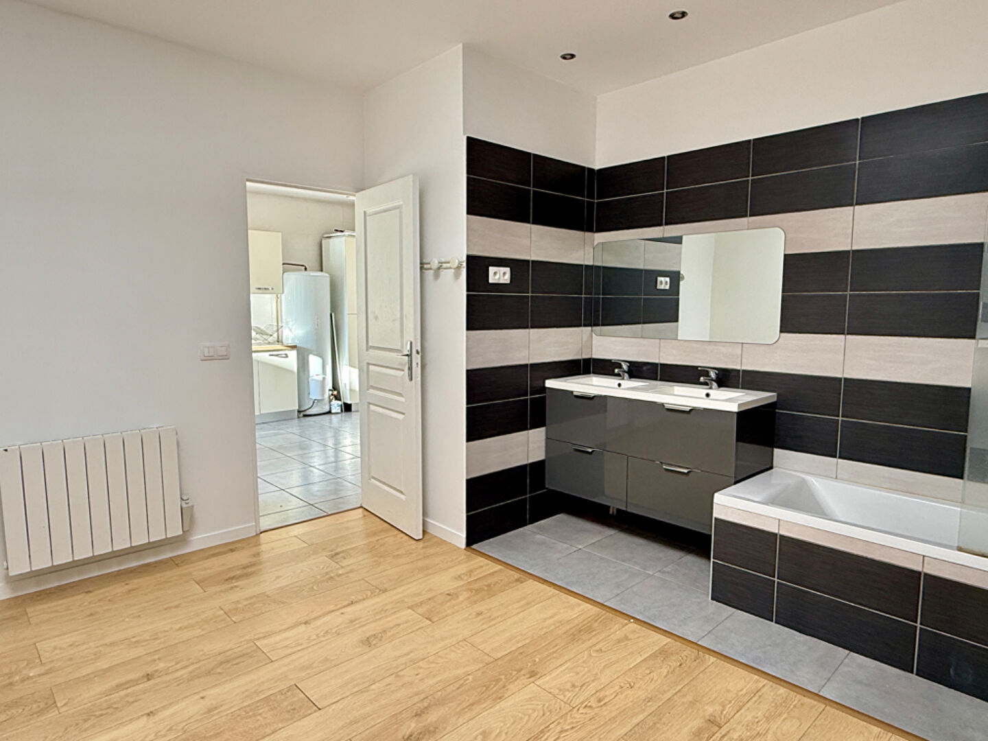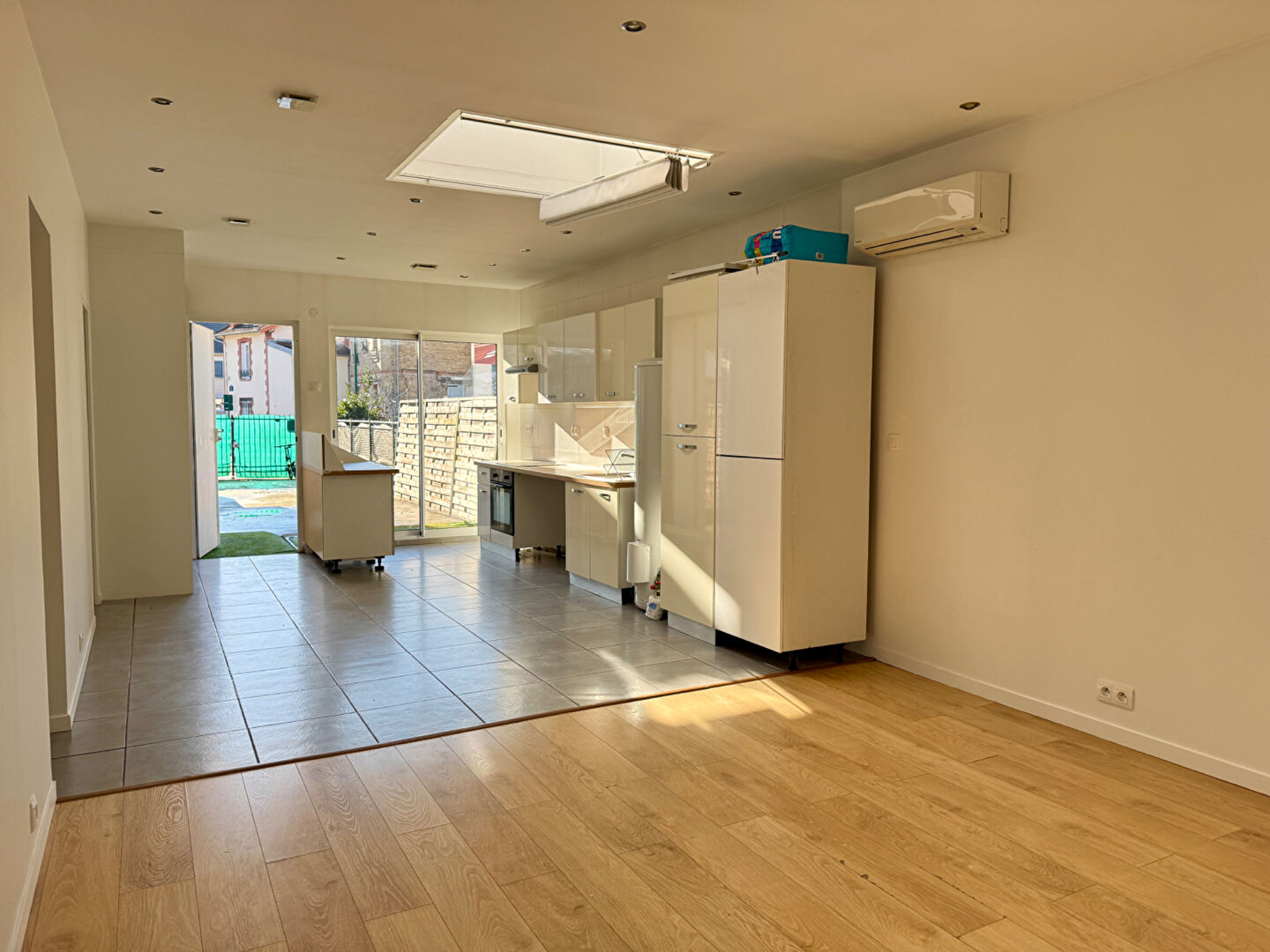 Proche T2, dans rue pavillonnaire calme, maison de 4 pièces principales de plain pied comprenant : entrée sur grande pièce à vivre de 40 m2 environ, 3 chambres équipées chacune d'une salle d'eau privative ( 2 douches et 1 baignoire), wc séparé, terrasse exposée plein Sud et accès voitures. Idéal pour colocation de 3 personnes. Libre de suite.