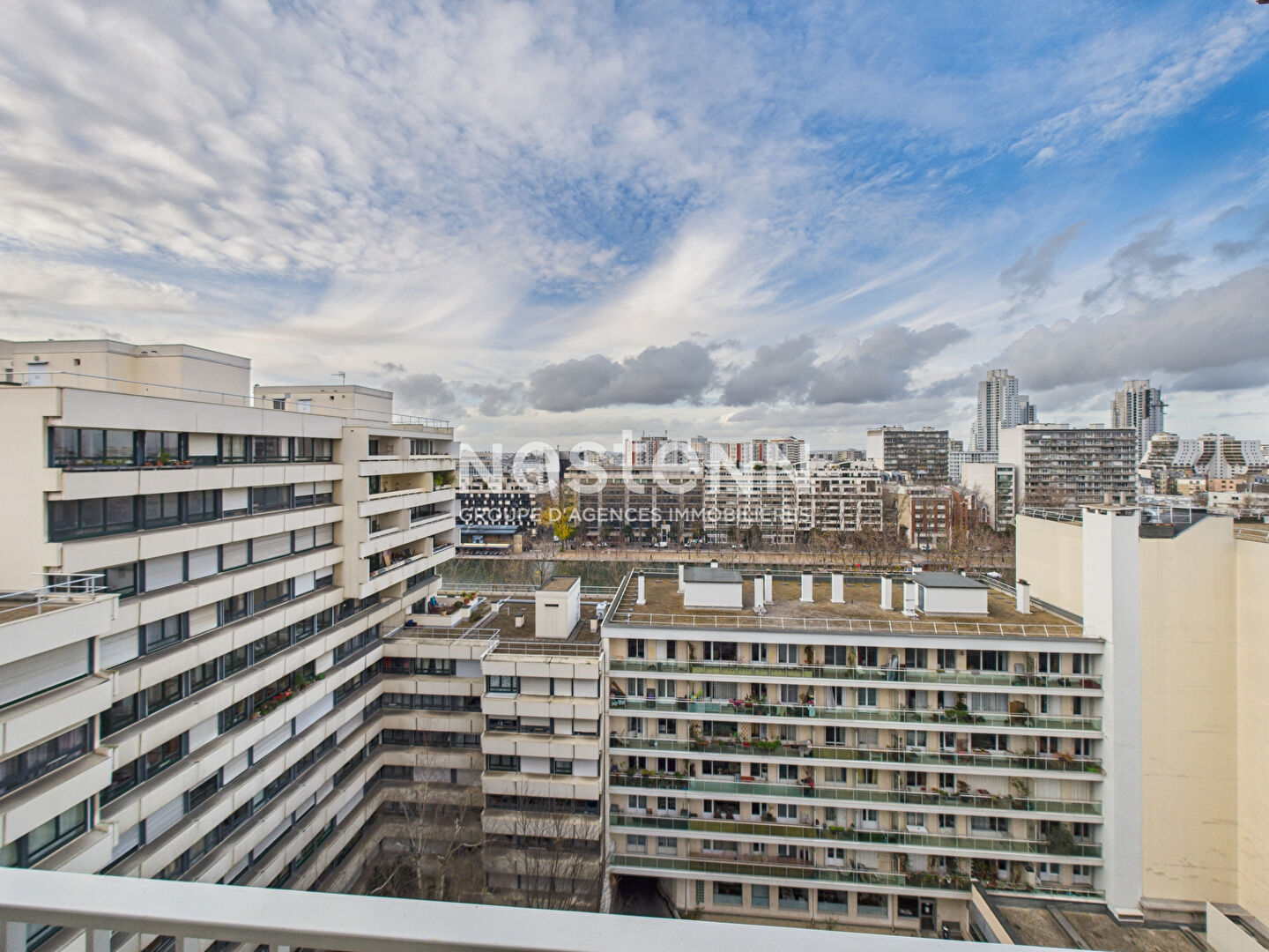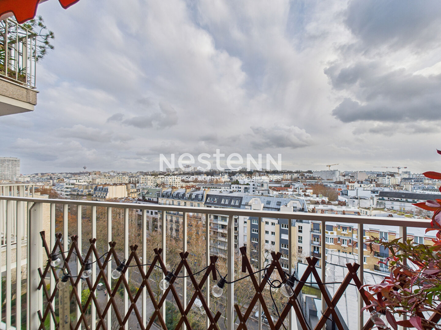 Situé dans un quartier prisé du 19e arrondissement, à proximité des commerces, des transports (métro...) et des écoles, cet appartement exceptionnel de 3 pièces, au 11e étage d'un immeuble récent et très bien entretenu, offre une vue imprenable sur tout Paris. L'appartement traversant se compose d'une entrée, d'une cuisine ouverte sur le séjour lumineux, avec un premier balcon de 6,20 m² exposé sud-est, idéal pour profiter des levers de soleil (vue sur le parc des Buttes-Chaumont), de deux chambres donnant accès au second balcon de 4 m² exposé nord-ouest (vue canal et tour Eiffel), d'une salle de bain et de WC séparés. Appartement en très bon état. Une cave et un emplacement de parking sécurisé complètent ce bien rare. (4.13 % honoraires TTC à la charge de l'acquéreur.) Tony MONTEIRO SOARES (EI) Agent Commercial - Numéro RSAC : - .
