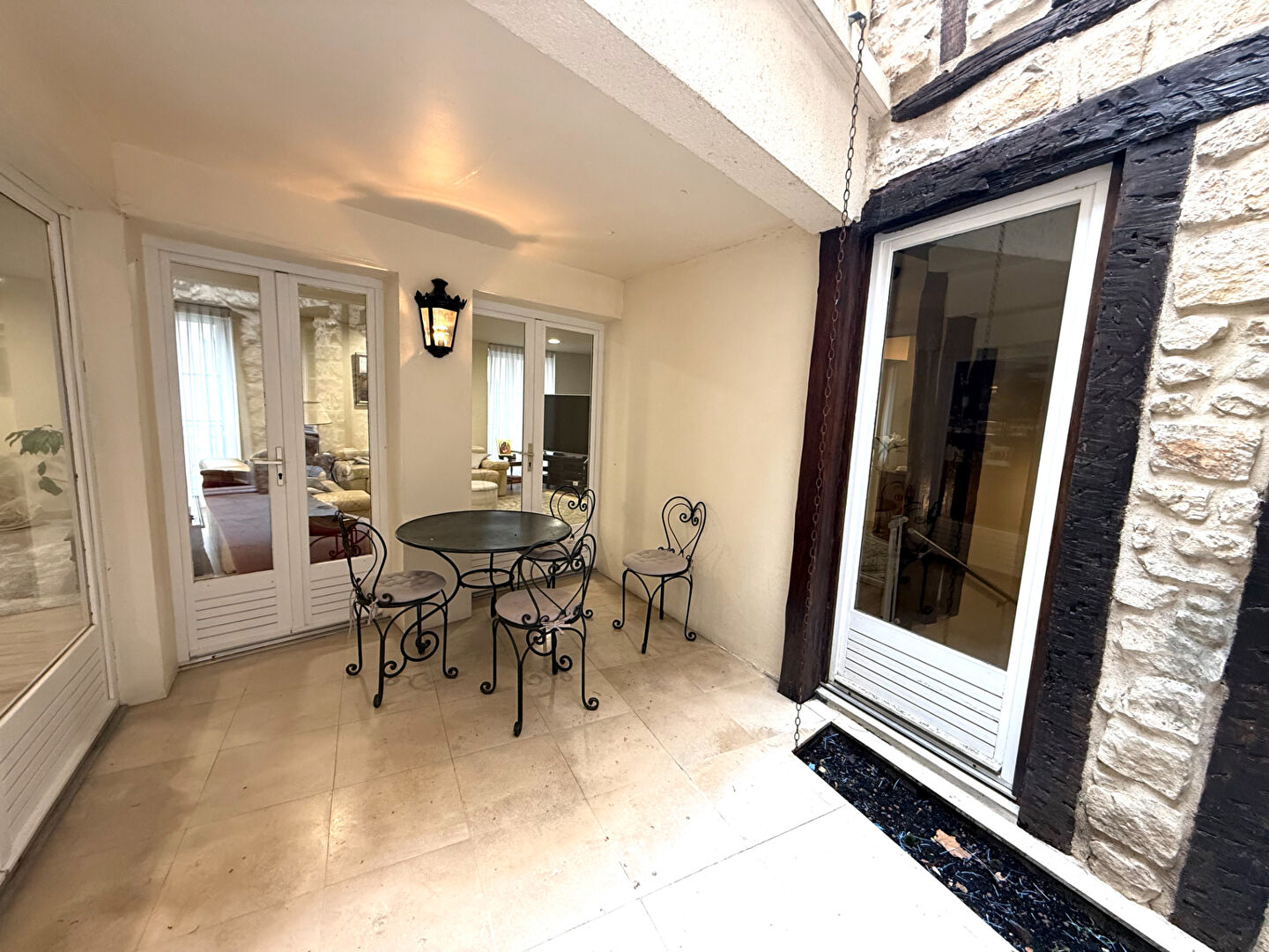 Fontainebleau, charmante maison de caractère, située à deux pas des commerces et du Château de Fontainebleau. Edifiée sur trois niveaux : Une première entrée, vous accueille, puis au premier niveau, le charme opère, un espace de vie salon avec sa cheminée, une salle à manger baignée de lumière donnant un accès direct sur un patio intimiste pour vos moments détente en famille ou entre amis. Dans ce même prolongement, on découvre une cuisine équipée et aménagée. Un espace lingerie avec placards. Un wc invités. Au deuxième niveau l'espace nuit offre 4 chambres de belles tailles, dont une suite parentale avec sa salle d'eau et wc ainsi qu'une autre salle d'eau indépendante avec wc. Un balcon. Troisième niveau, une suite parentale avec sa salle d'eau et wc. Nombreux rangement intégrés, prestations de qualité, marbres dans les salles d'eau, poutres apparentes, parquet, belles hauteur sous plafond. Une grande cave complète ce bien. Possibilité de se garer facilement au parking à trois minutes de l'appartement. Un bien prêt à vous accueillir. Une adresse exceptionnelle, coeur de ville. Monica Montoro (EI) 06 99 19 68 84 RSAC : 818703092 MONICA MONTORO (EI) Agent Commercial - Numéro RSAC : - .