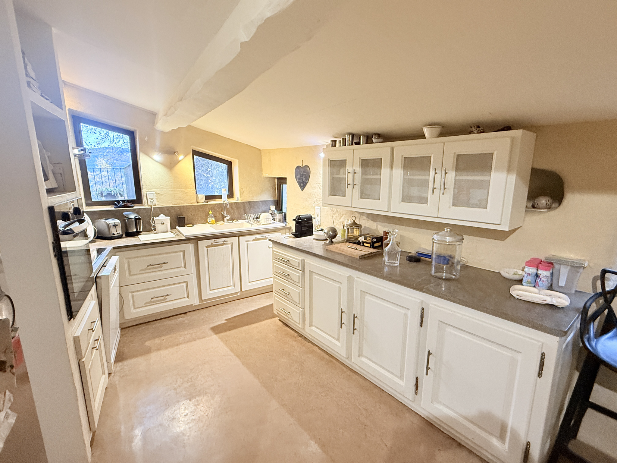Le charme de l'ancien s'y conjugue harmonieusement avec des prestations de qualité : menuiseries aluminium double vitrage, toiture reprise et isolation chanvre.
