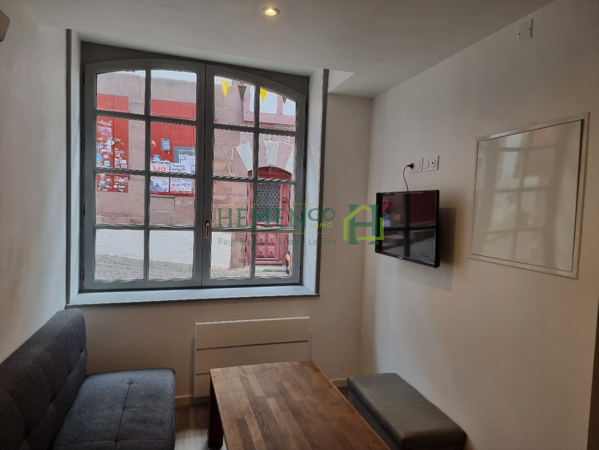 Petit cocon au coeur de Saint-Jean-Pied-de-Port. Ce studio meublé de 20 m2, récemment rénové, vous accueille dans une ambiance cosy et élégante. Espace de vie lumineux, décoré avec goût. Salle d'eau indépendante avec WC.Idéalement situé en plein centre, à proximité immédiate des commodités et des transports.