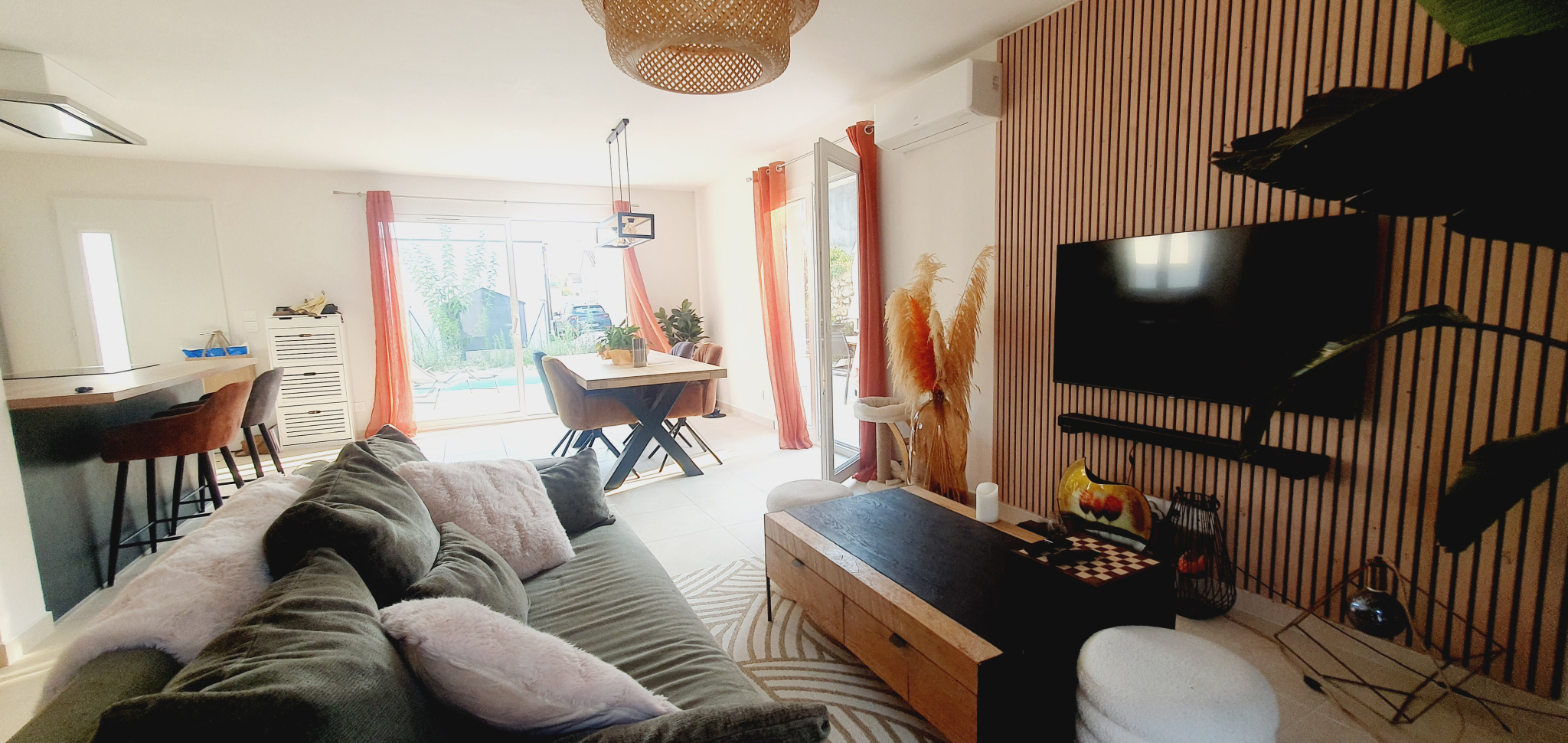 Dans le village au Nord, proche de Nîmes à 19 mns , venez découvrir cette charmante maison neuve 2023, de type 4 d'une surface de 88 m2 habitables avec jardin et bassin, au calme avec parking et garage. Elle se compose en rez de chaussée, d'une très belle pièce de vie de 40 m2 avec cuisine entièrement équipée et aménagée, le tout ouvrant sur les terrasses en béton lissé (25 m2) agrémentées d'un bassin, toilettes indépendant, rangement, et accès garage. A l'étage 3 chambres, dont une suite parentale avec dressing et salle d'eau privative avec fenêtre, une salle de bain avec toilettes avec fenêtre. Le garage d'une superficie de 16 m2 accueille l'espace buanderie, accès sur l'extérieur. Le bassin ( traitement au sel ) promet de beaux moments de détente, et les terrasses avec son boulodrome appelle à la convivialité. Possibilité de stationner 2 voitures.Le tout sur un terrain de 326 m2 clos sauf portail. Le confort moderne est présent avec la climatisation reverssible, les doubles vitrages, et les volets roulants électriques. Venez découvrir ce bien, idéal pour un premier achat ou une résidence secondaire entre Nîmes et Alès. Rare, entre art de vivre à la provençale et élegance ! Coup de coeur.