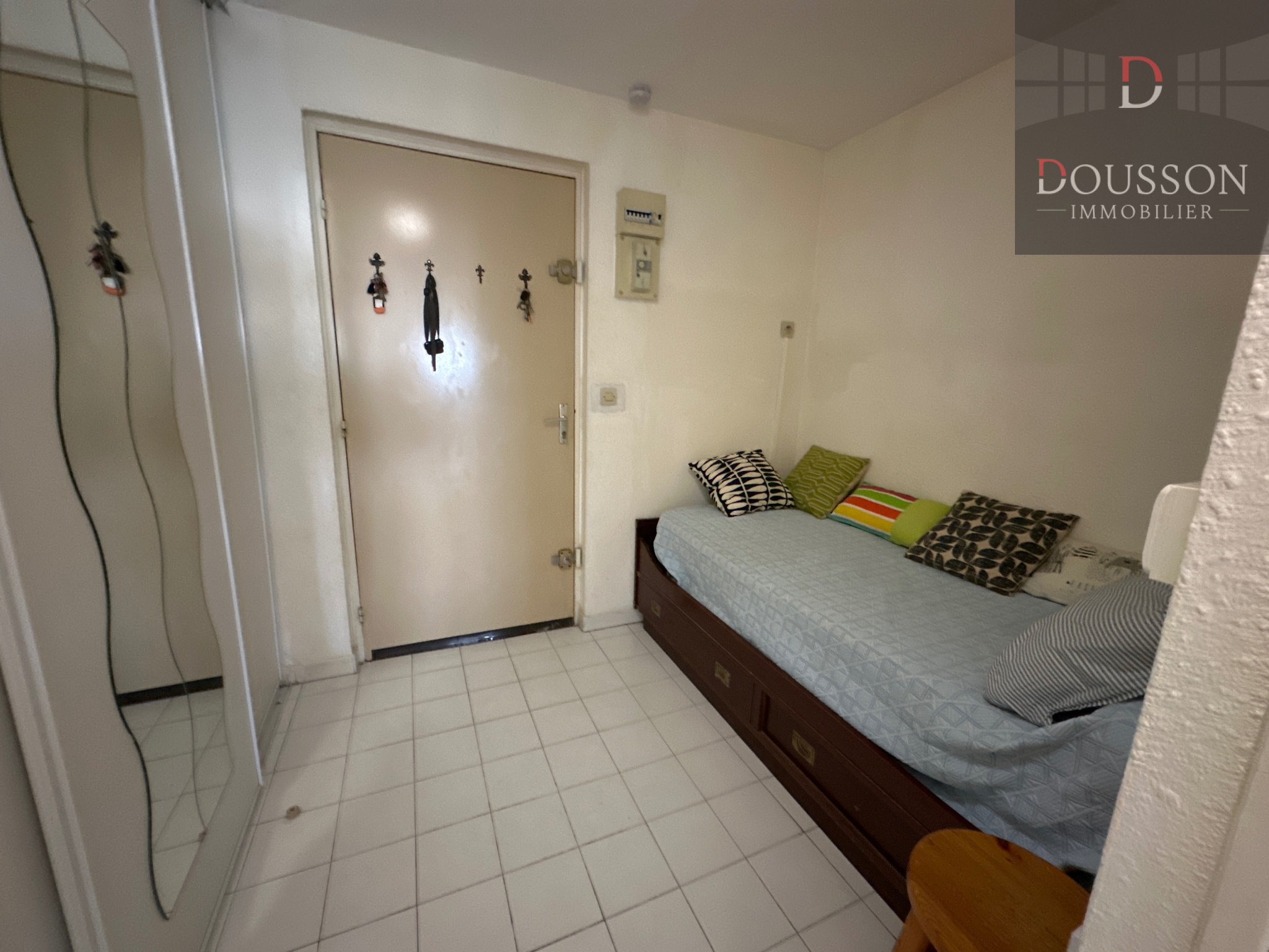 Proche plage du Séquarium, dans copropriété avec piscine, au 3 ème étage avec ascenseur, P2 cabine, composé d'une cabine, salle d'eau et wc séparé, cuisine aménagée avec lave linge donnant sur salon séjour, une chambre avec fenêtre, une loggia fermée, vue très dégagée, un cellier a l'étage, parking privatif, vendu meublé, ravalement fait en 2025, me contacter pour visite, Angela FOTI 06 72 23 12 03 PRIX 168000 FAI