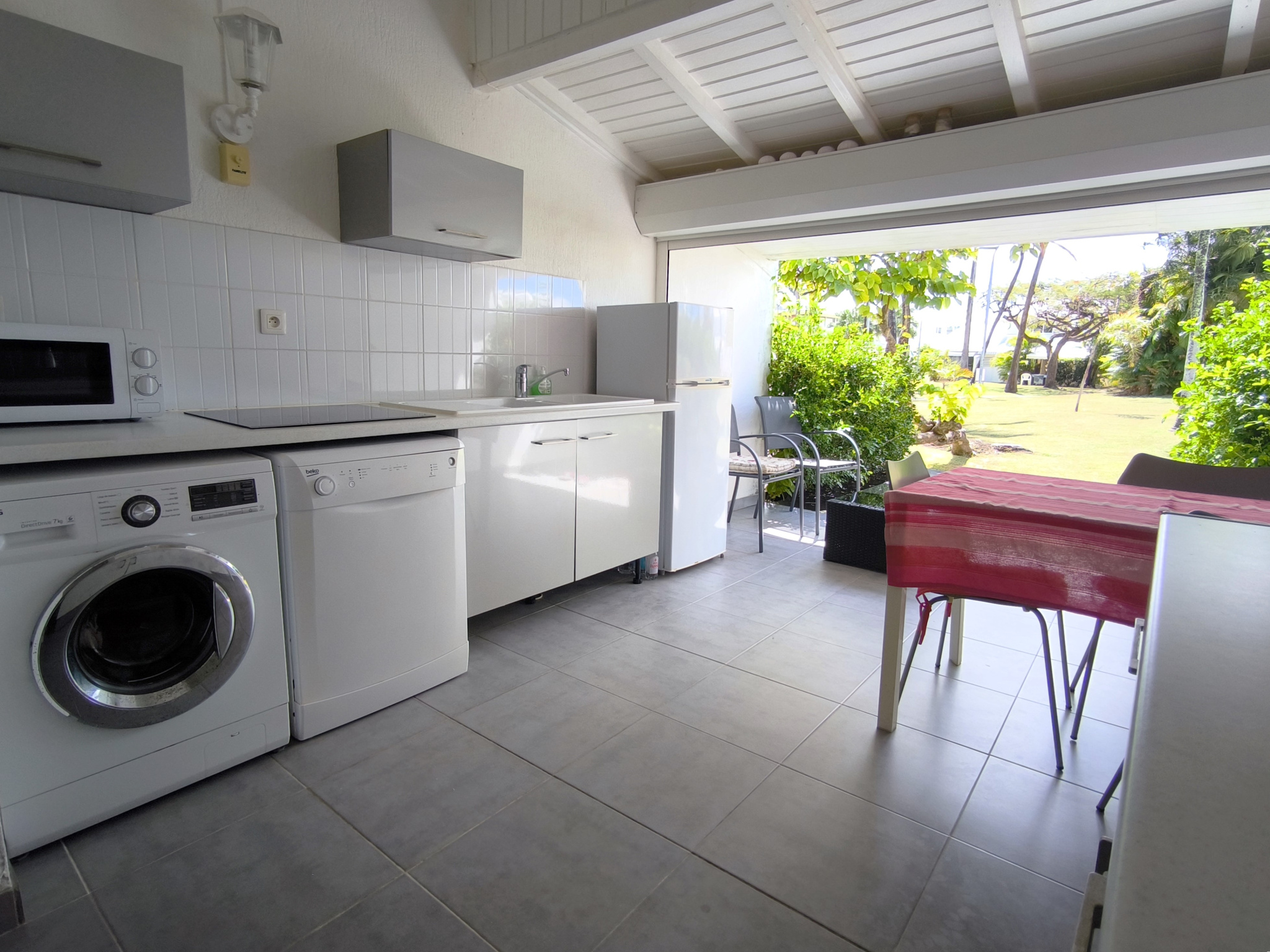 Un intérieur pratique et bien agencé : Séjour spacieux, modulable en seconde chambre selon vos besoins Cuisine aménagée sur la terrasse couverte, parfaite pour profiter de l'extérieur (la terrasse se ferme par un volet roulant) Chambre avec accès direct à l'extérieur Dégagement avec nombreux rangements, optimisant l'espace Salle d'eau + WC indépendant