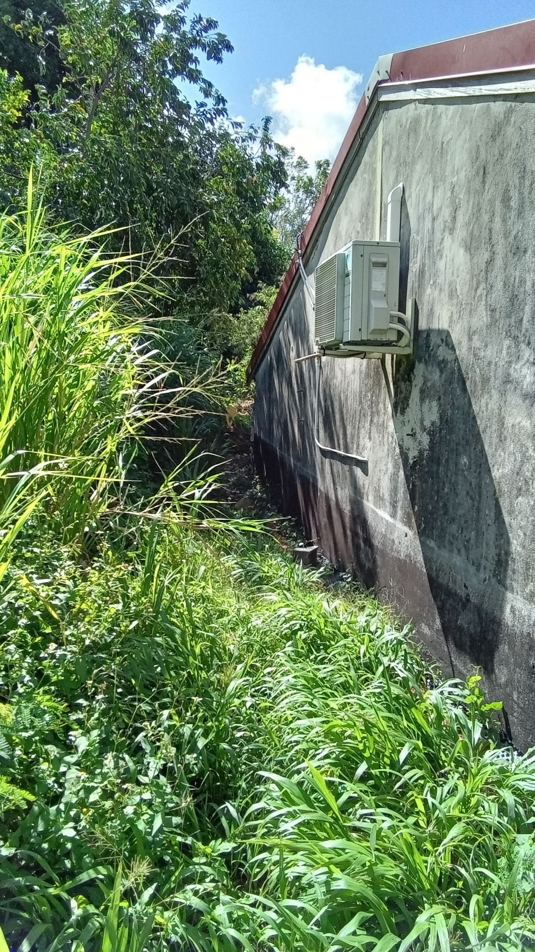 terrain à batir décaissé ; une partie en pente;