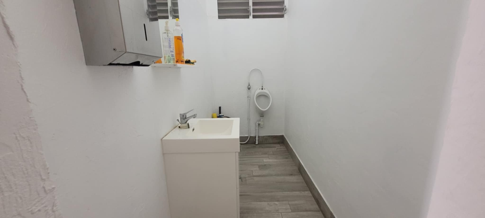 Il se compose d'une pièce principale de 112M2, d'une pièce de30 M2, d'une pièce de 12M2, d'une mezzanine de 6M2, d'un toilette pour homme avec urinoir et un autre toilette avec WC. Une terrasse à l'avant et un espace extérieur arrière viennent compléter l'ensemble.